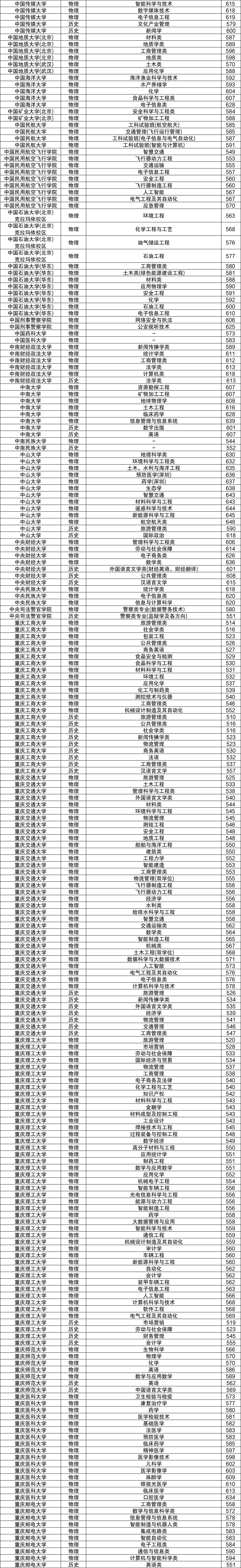 2024年国家专项计划各个大学分数线重庆省一览表如下: