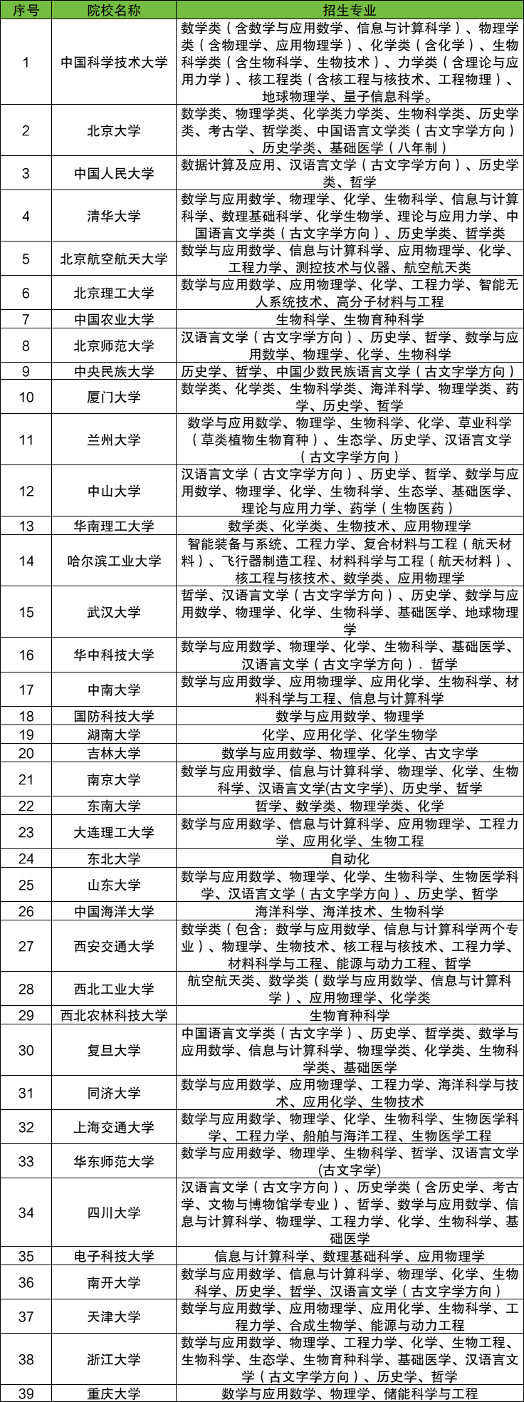 而各专业在不同省份的招生名额也各有差异,具体可在强基计划报名系统中查询。本文将带来2025年39所高校强基计划专业一览表,供参考。