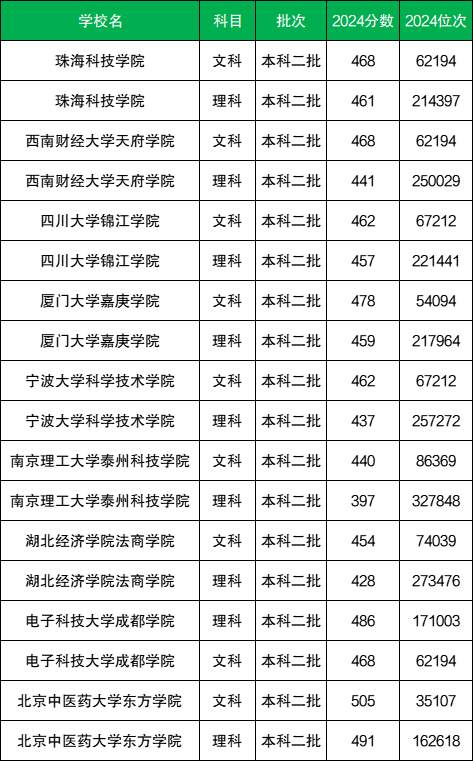 二、独立院校2024年录取分数线