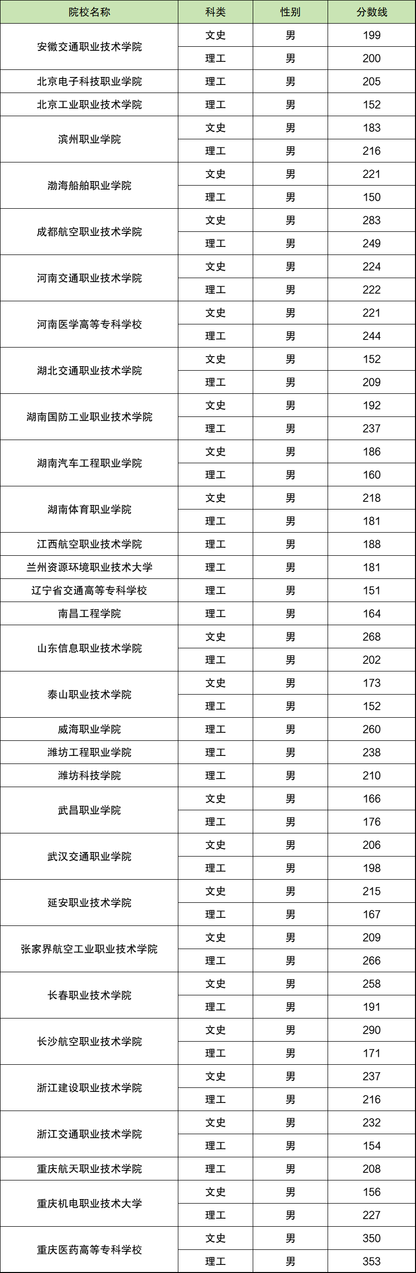 1、安徽交通职业技术学院:文科199分、理科男生200分