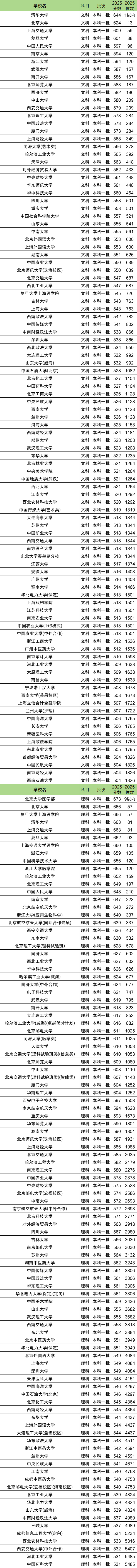 二、全国一本大学录取分数线