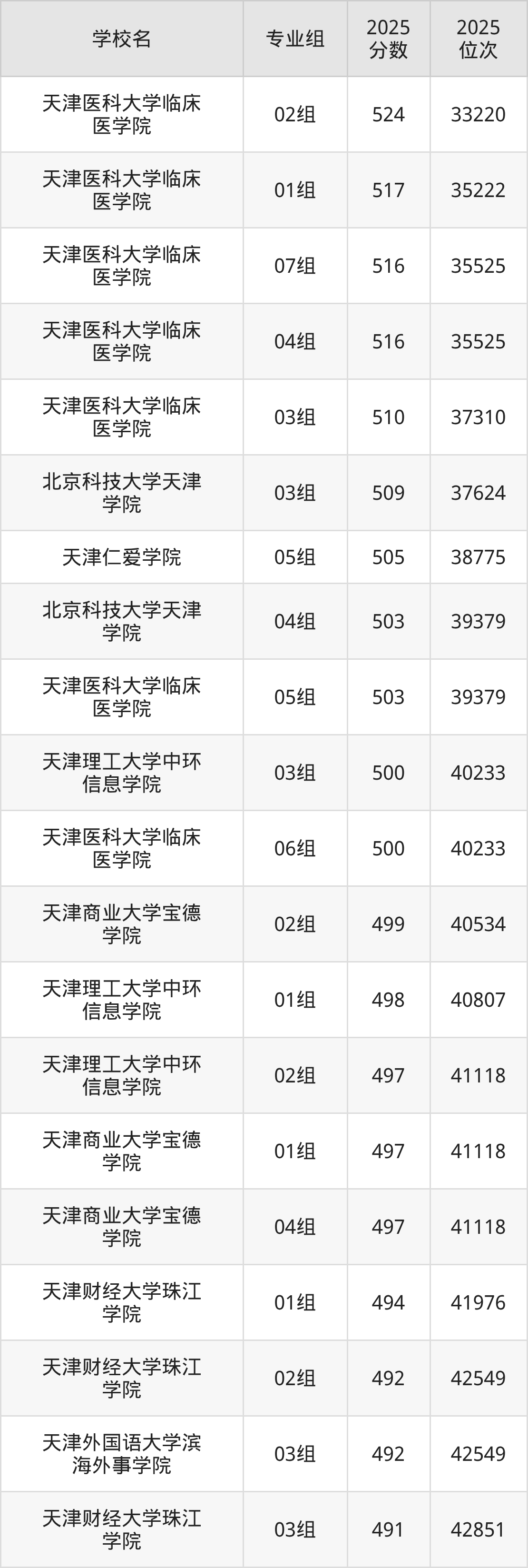 (4)天津医科大学临床医学院04组:516分、35525名;