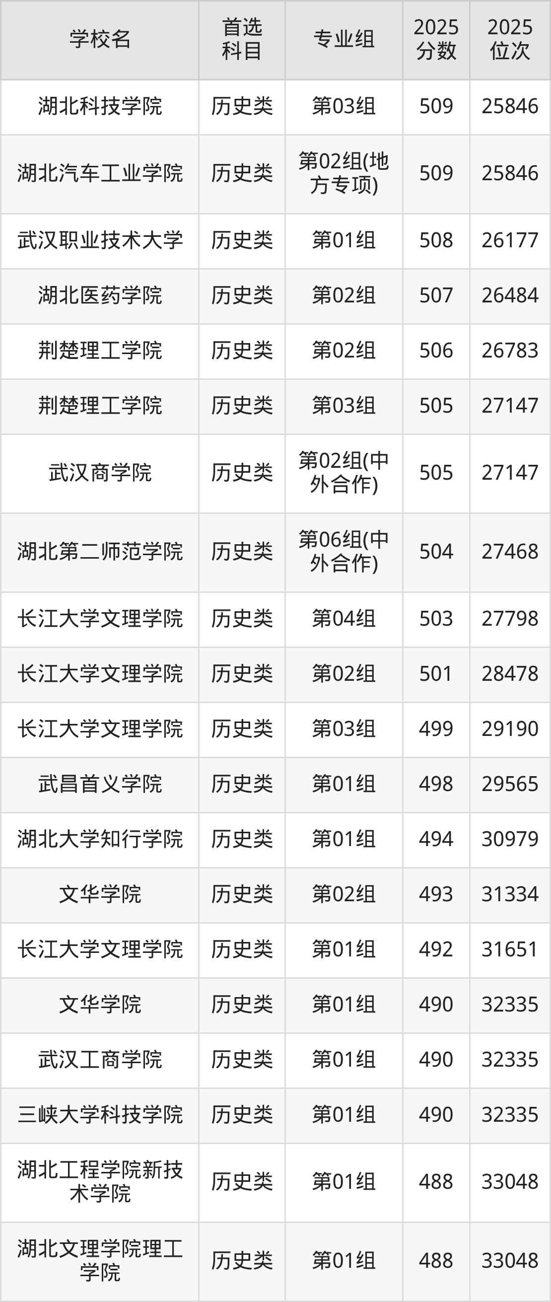 2025年湖北省二本大学录取分数线一览表完整版,请查看: