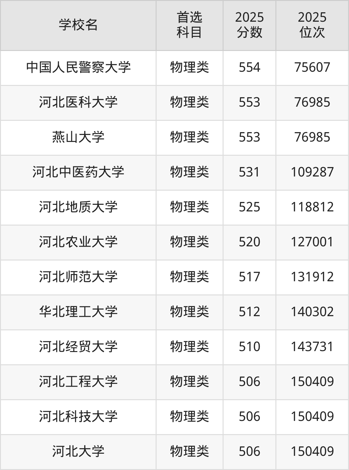 2025年河北省一本大学录取分数线一览表完整版,请查看:
