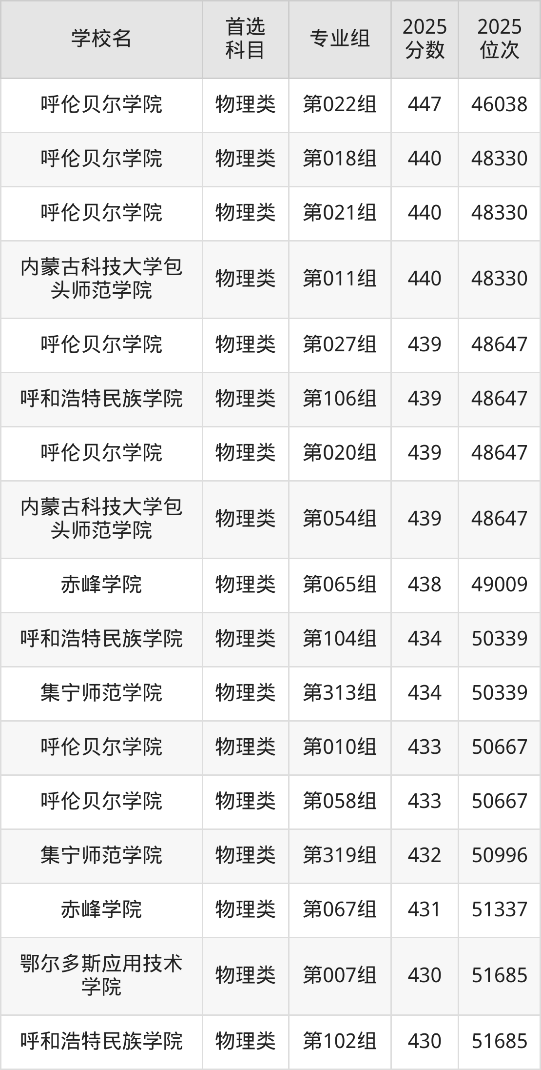 2025年内蒙古本科批次线历史类418分、物理类375分。因此内蒙古考生如果想留在自治区内读二本大学的话,历史类考生至少需要过线9分、而物理类考生刚过本科线就行。