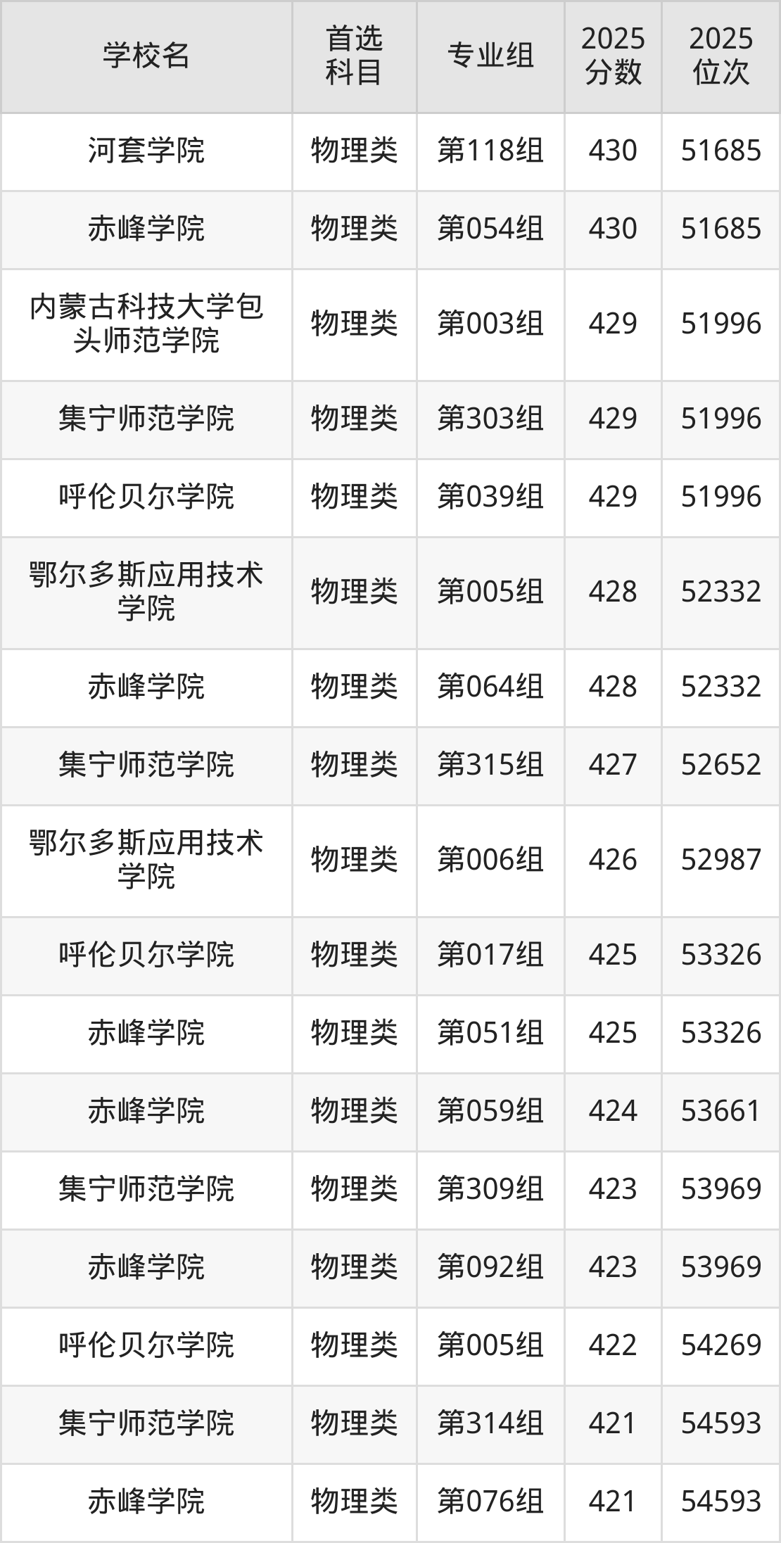 2025年内蒙古二本大学最低录取分数线是427分,收分最低的学校为兴安职业技术大学第301组。