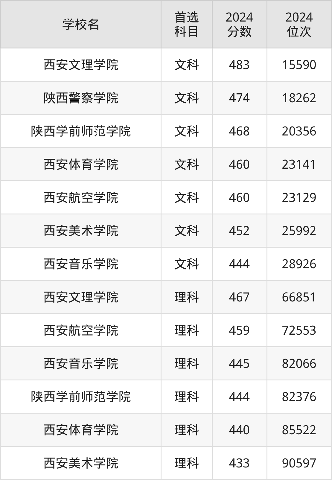 2024年西安市公办二本大学录取分数线一览表完整版,请查看: