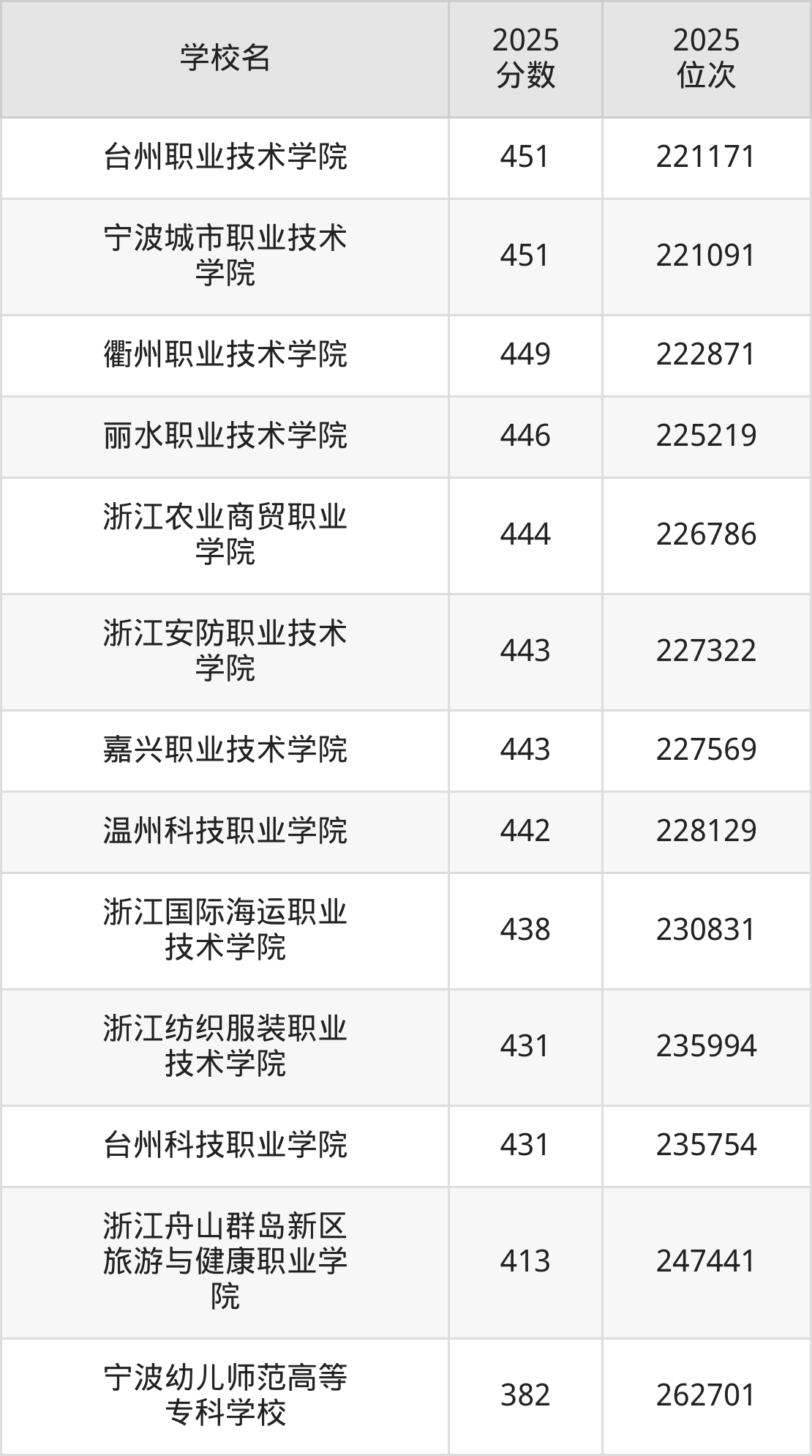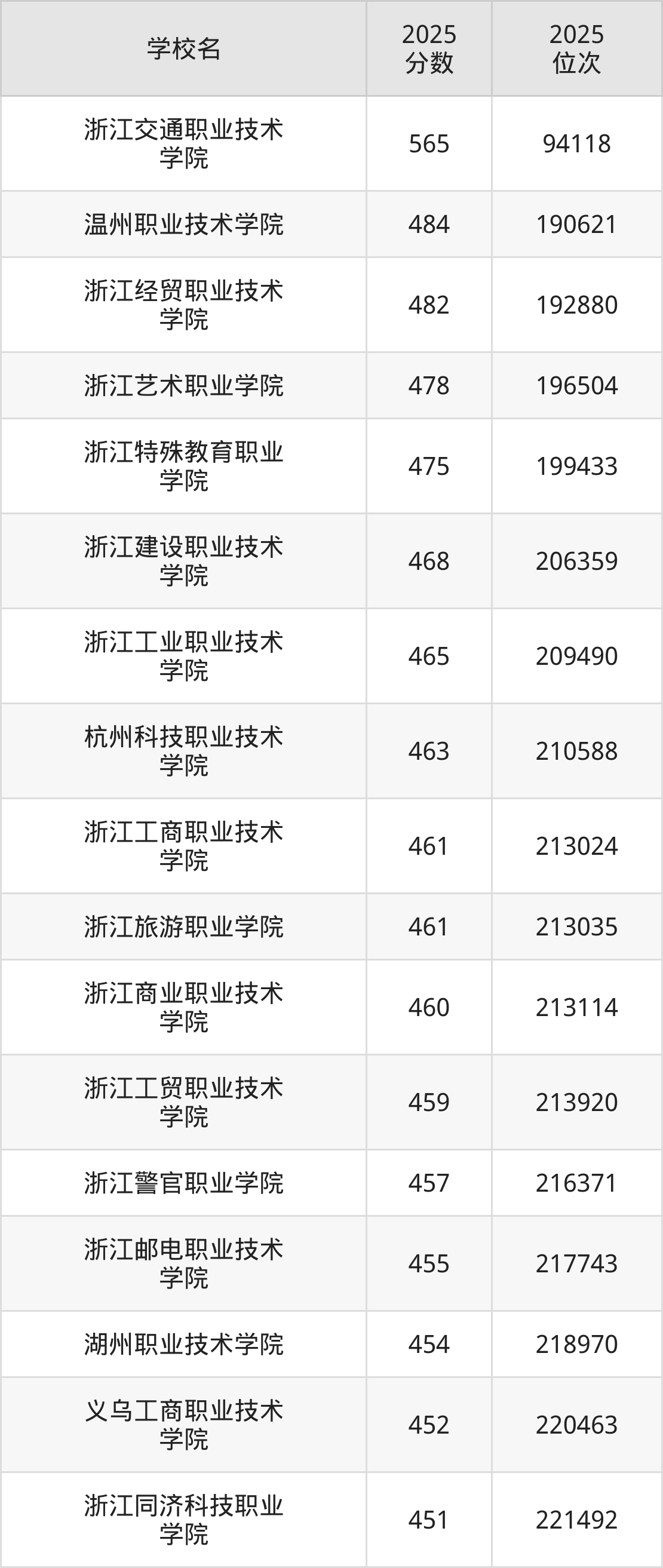 2025年浙江省公办大专录取分数线一览表完整版,请查看: