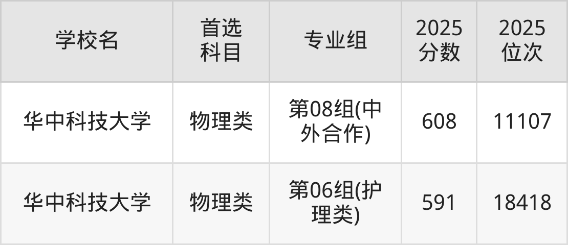 (5)华中科技大学第06组(护理类):591分、18418名;