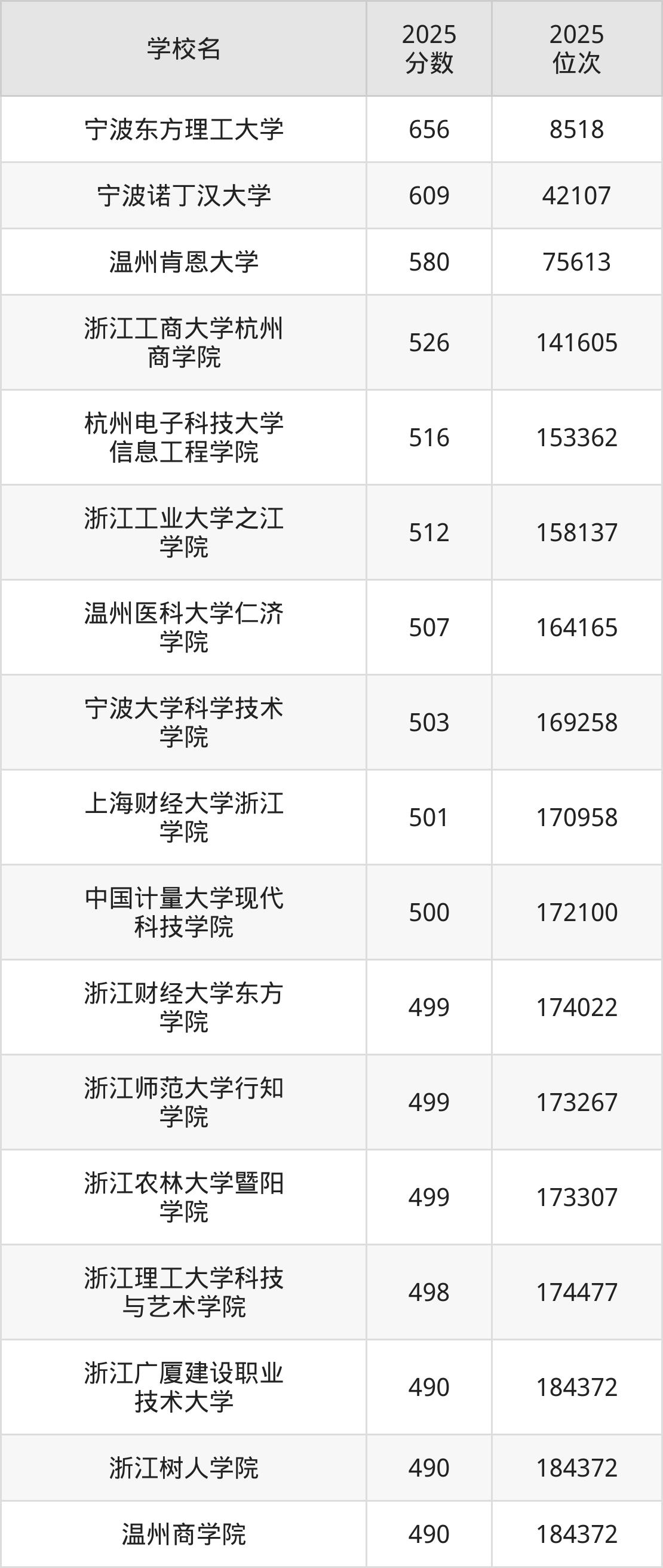 2025年浙江省民办本科录取分数线一览表完整版,请查看: