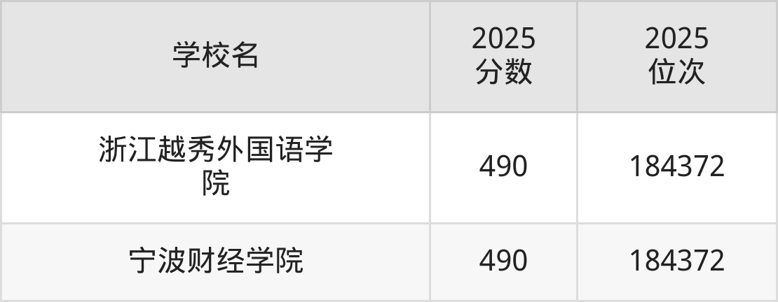 2025年浙江民办本科最低录取分数线是490分,收分最低的学校为浙江广厦建设职业技术大学。