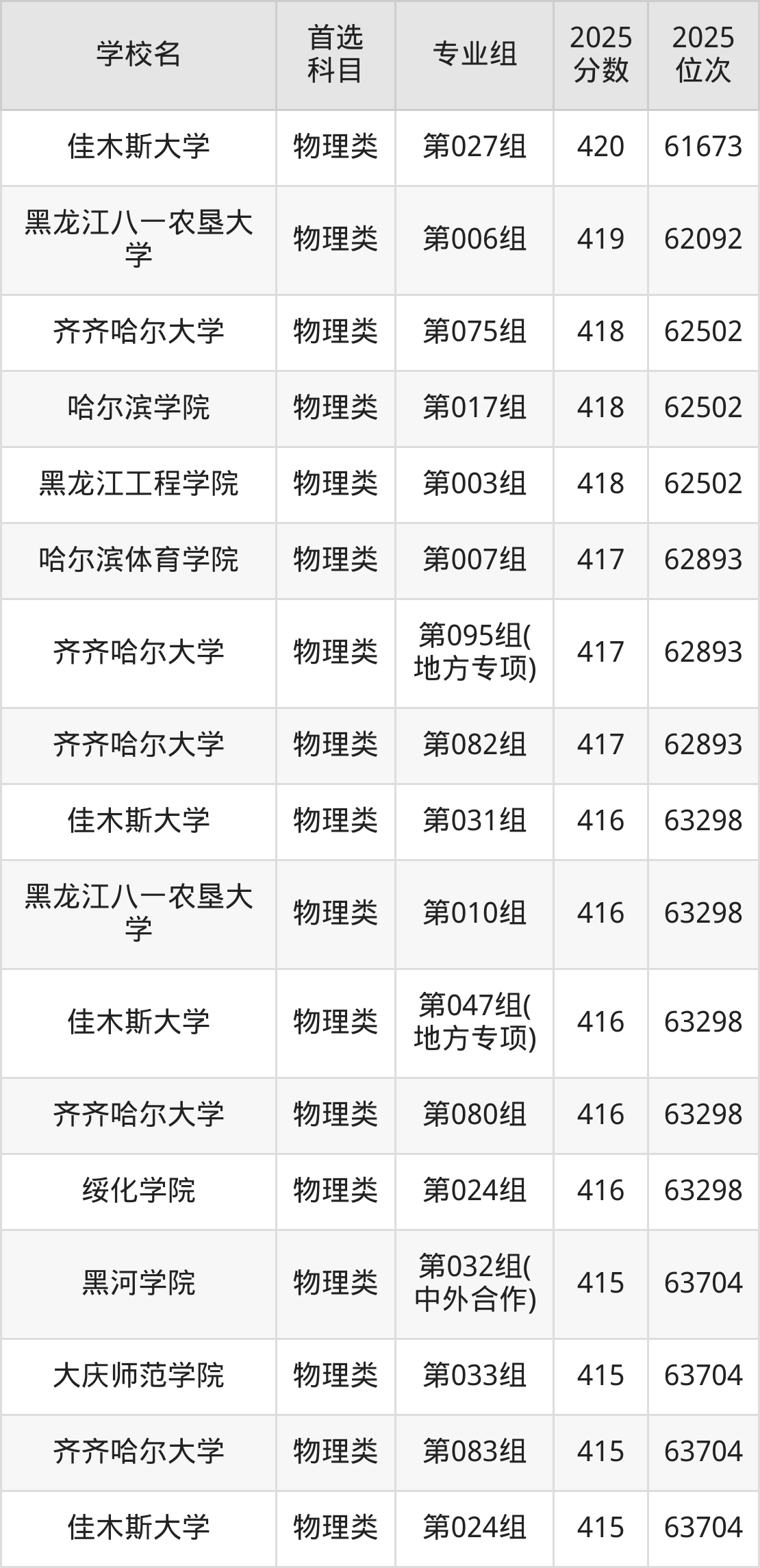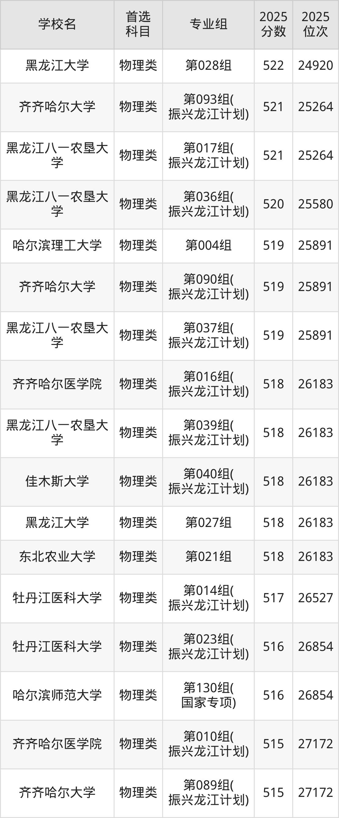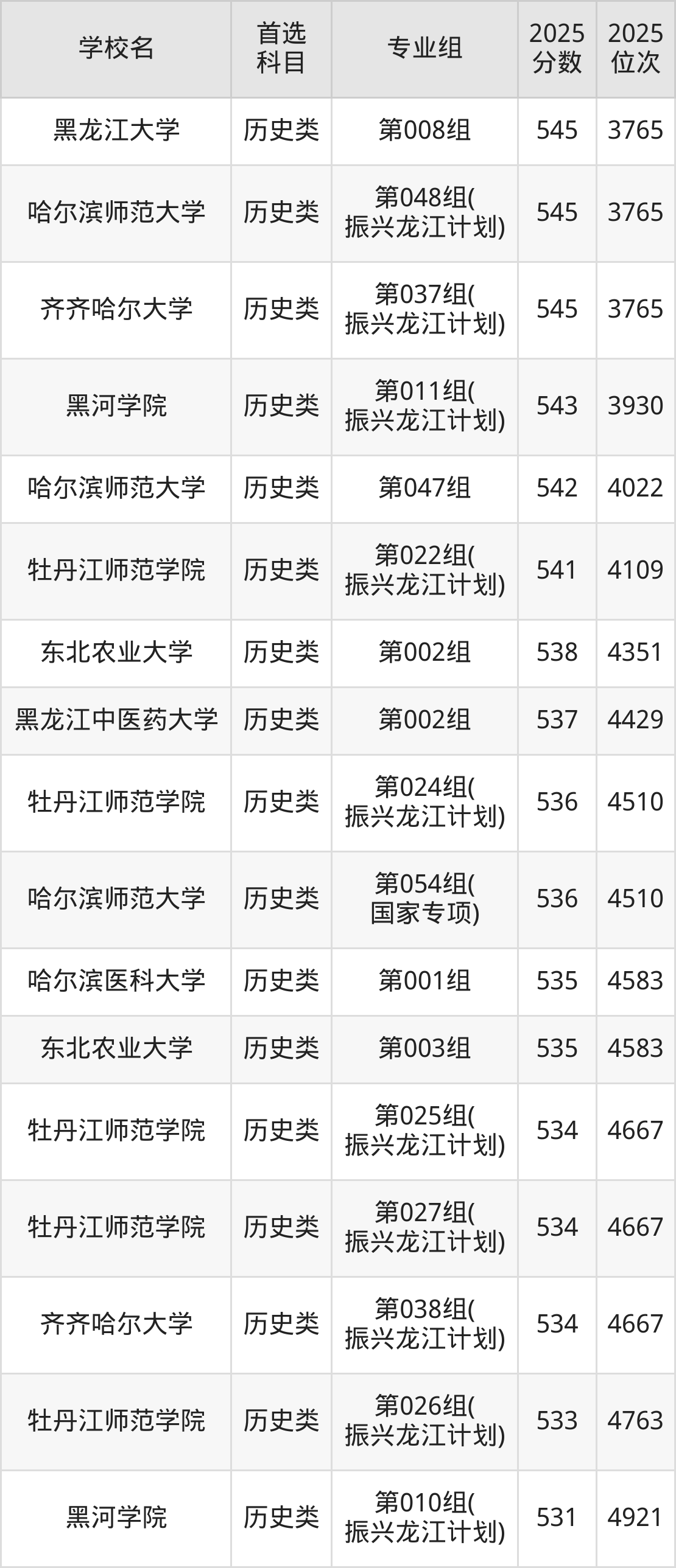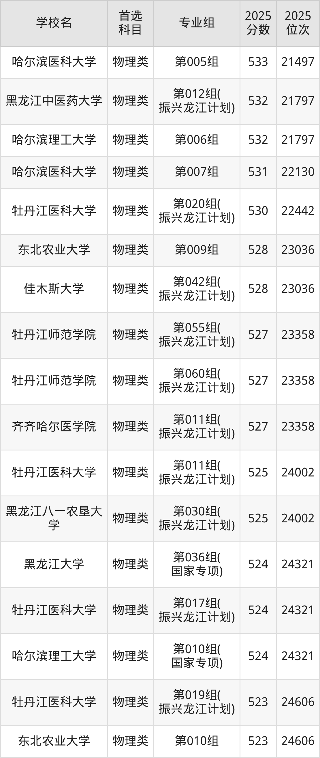 2025年黑龙江省公办本科录取分数线一览表完整版,请查看: