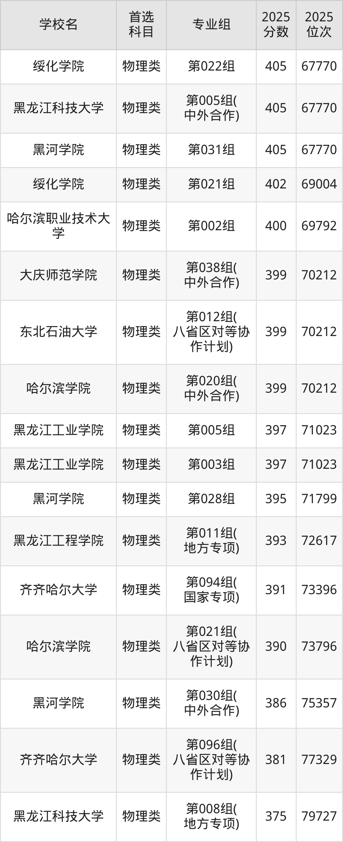 (1)黑龙江科技大学第008组(地方专项):375分、79727名;