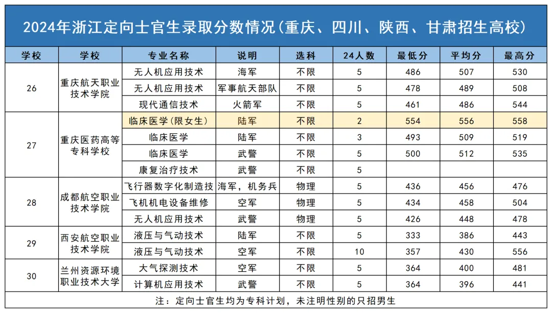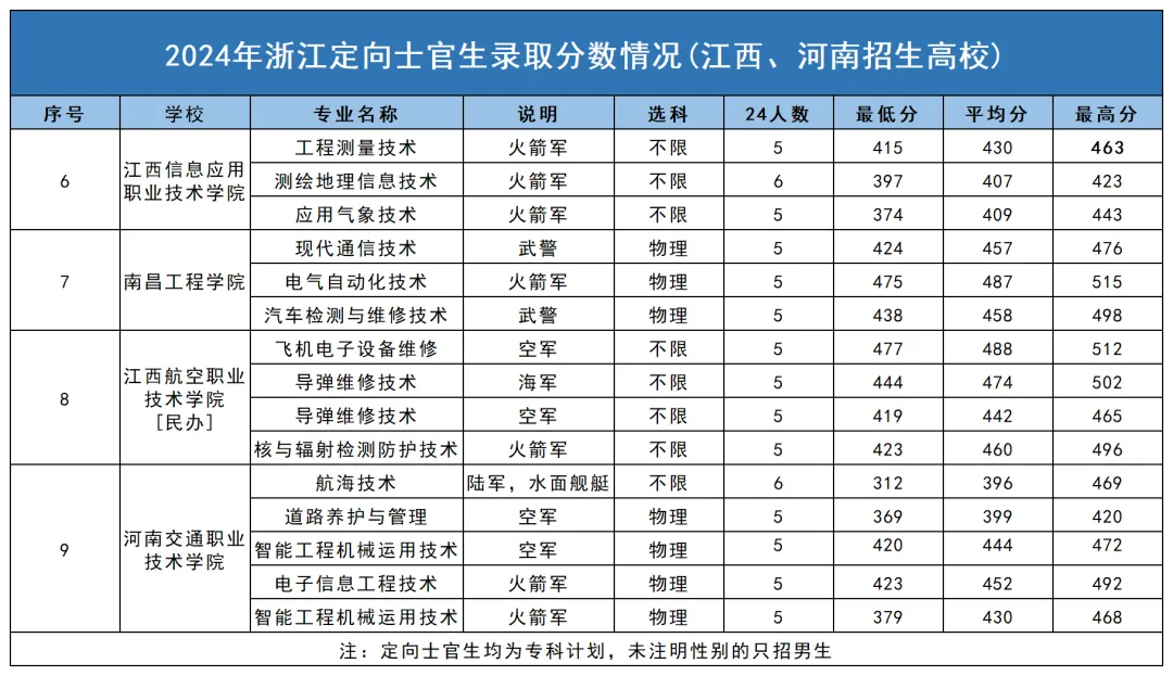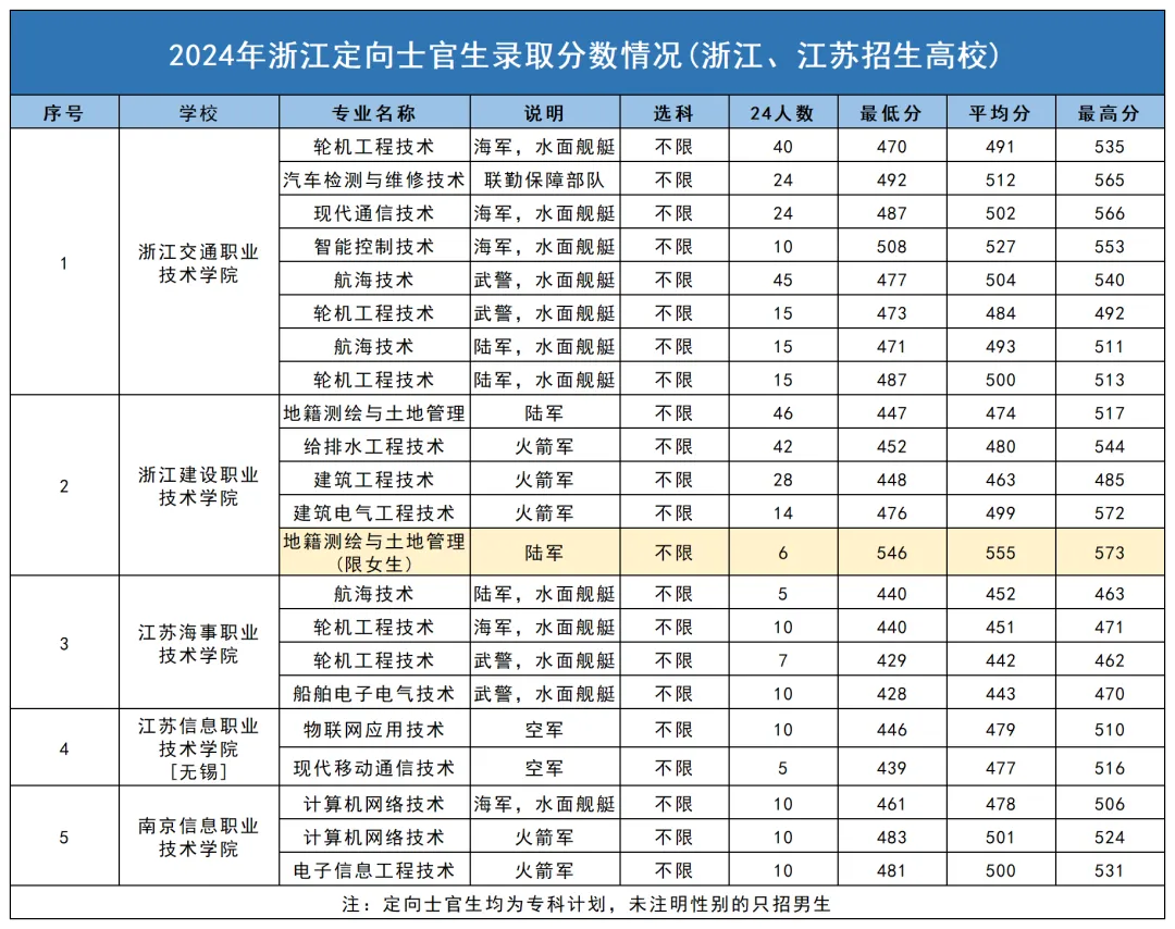 本文也整理出2024年浙江定向培养军士招生计划,供参考。