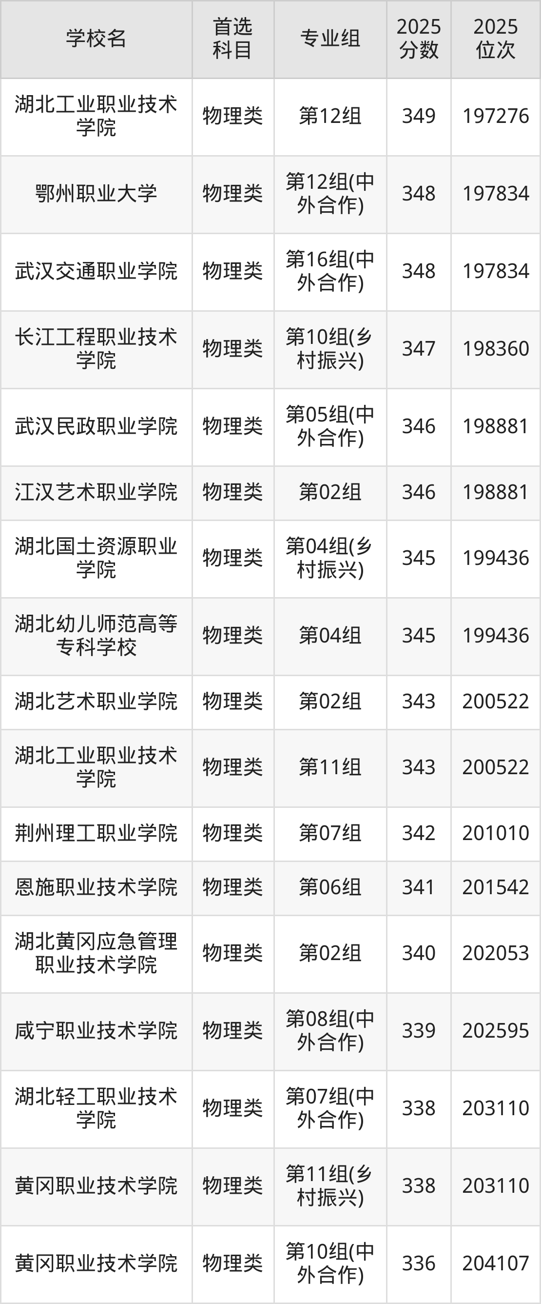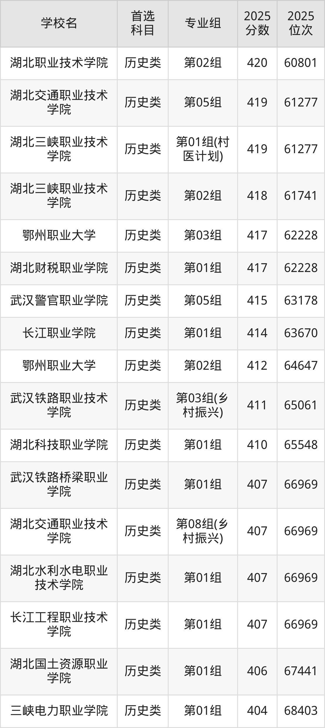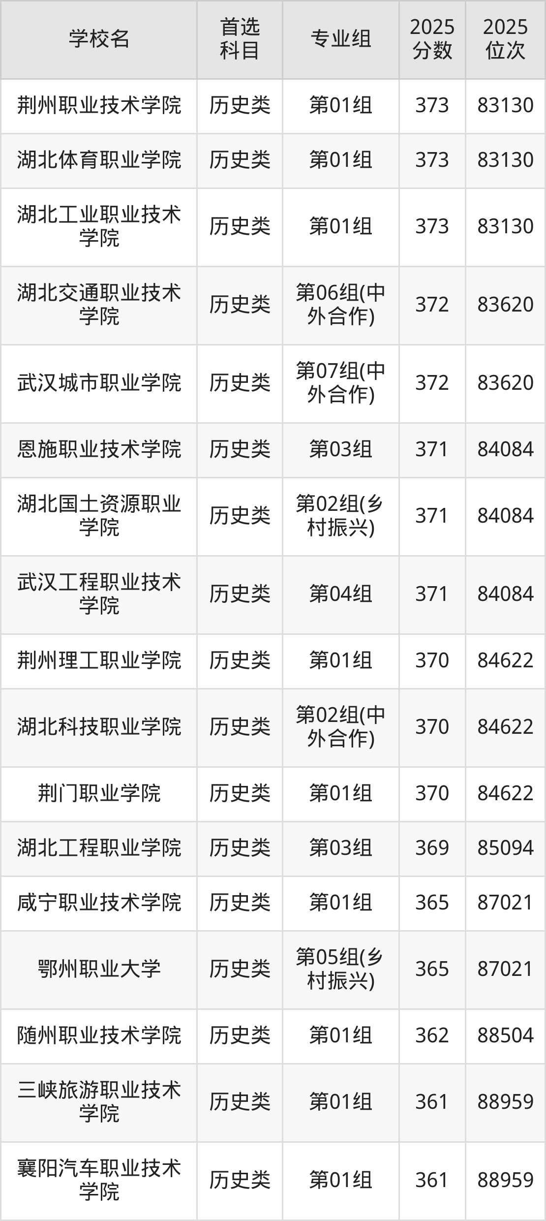 2025年湖北省公办大专录取分数线一览表完整版,请查看: