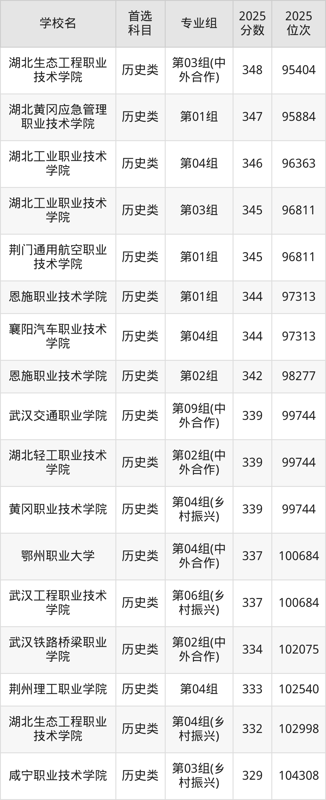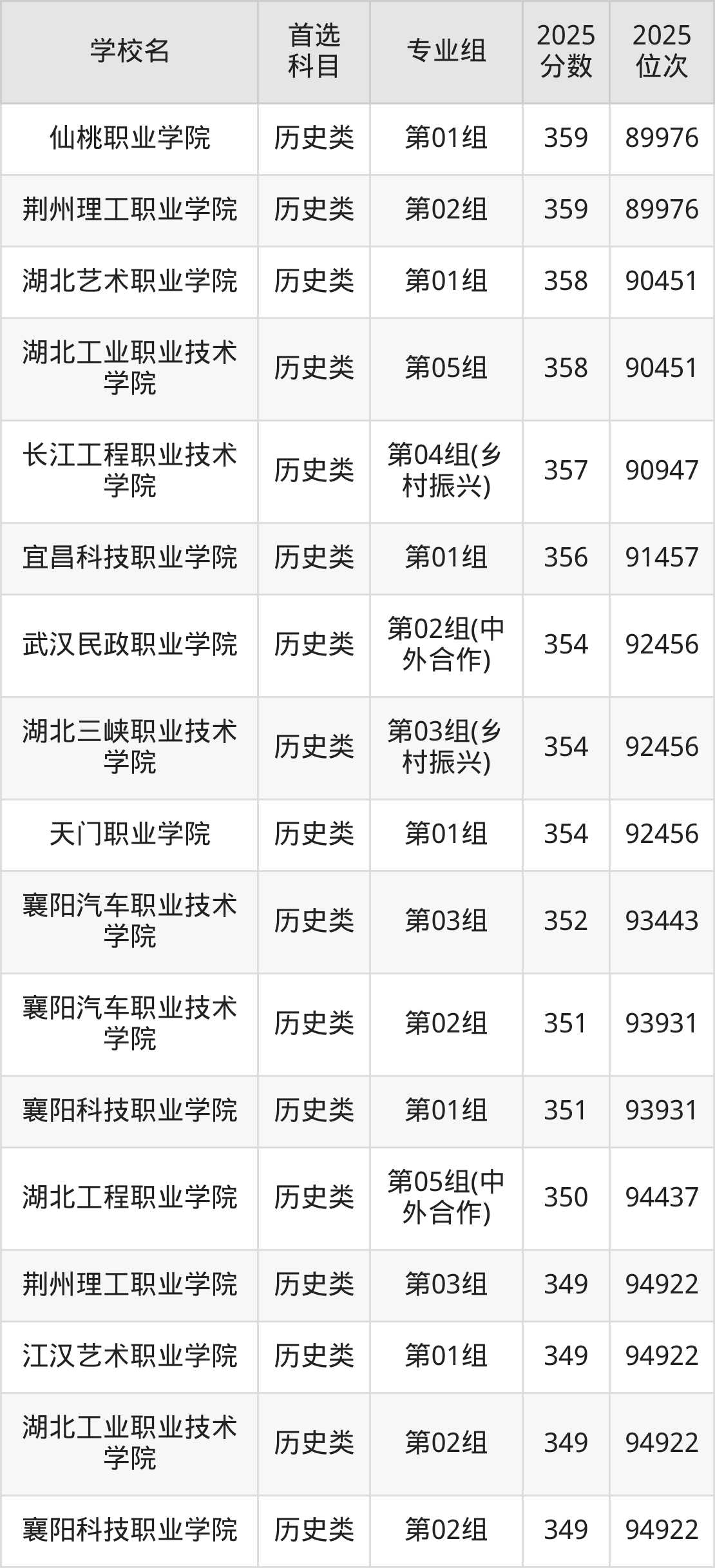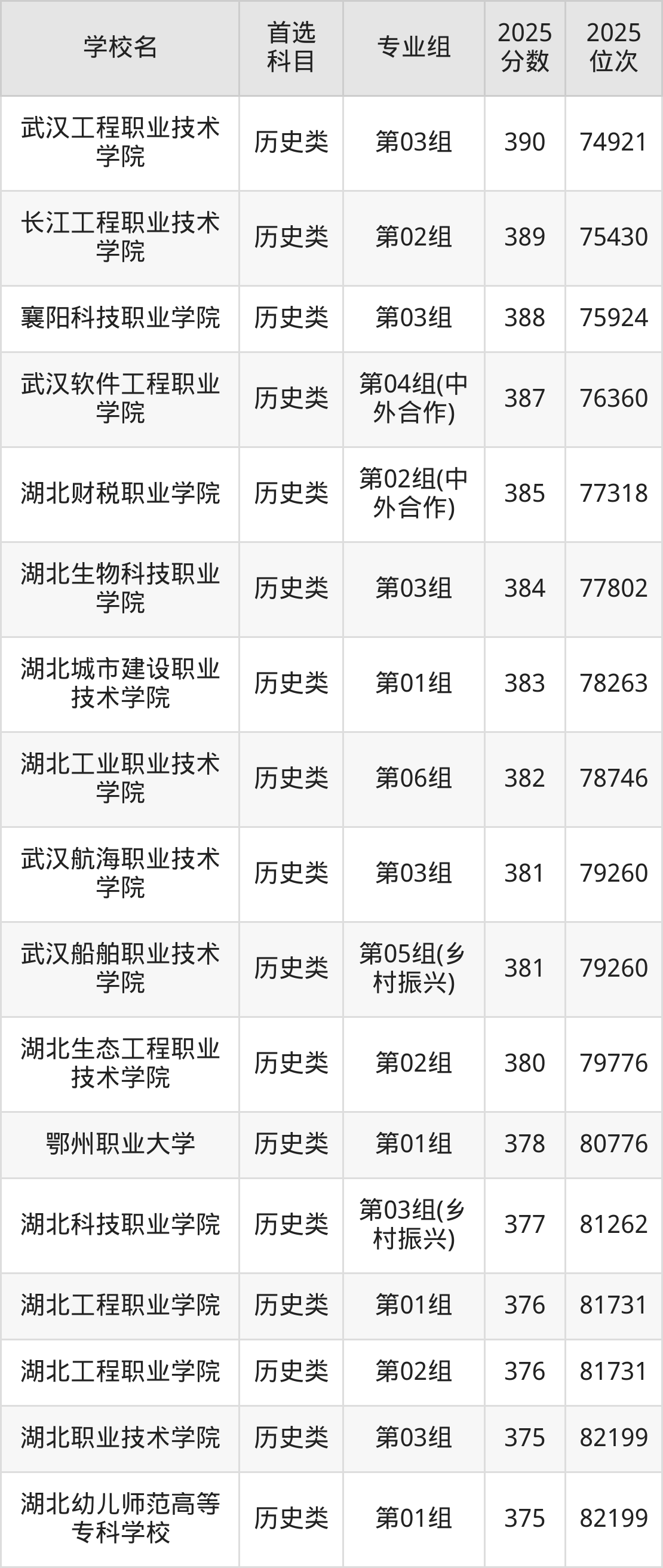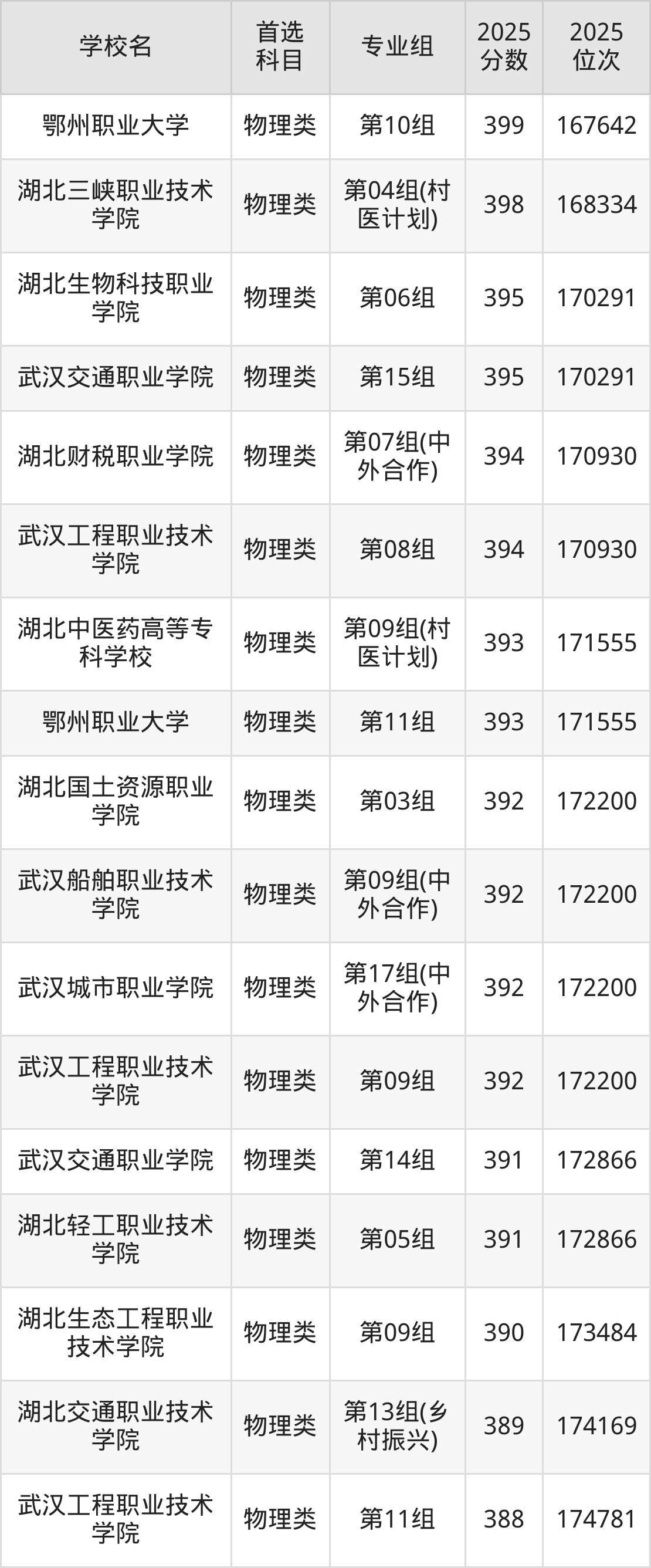 2025年湖北省公办大专录取分数线一览表完整版,请查看: