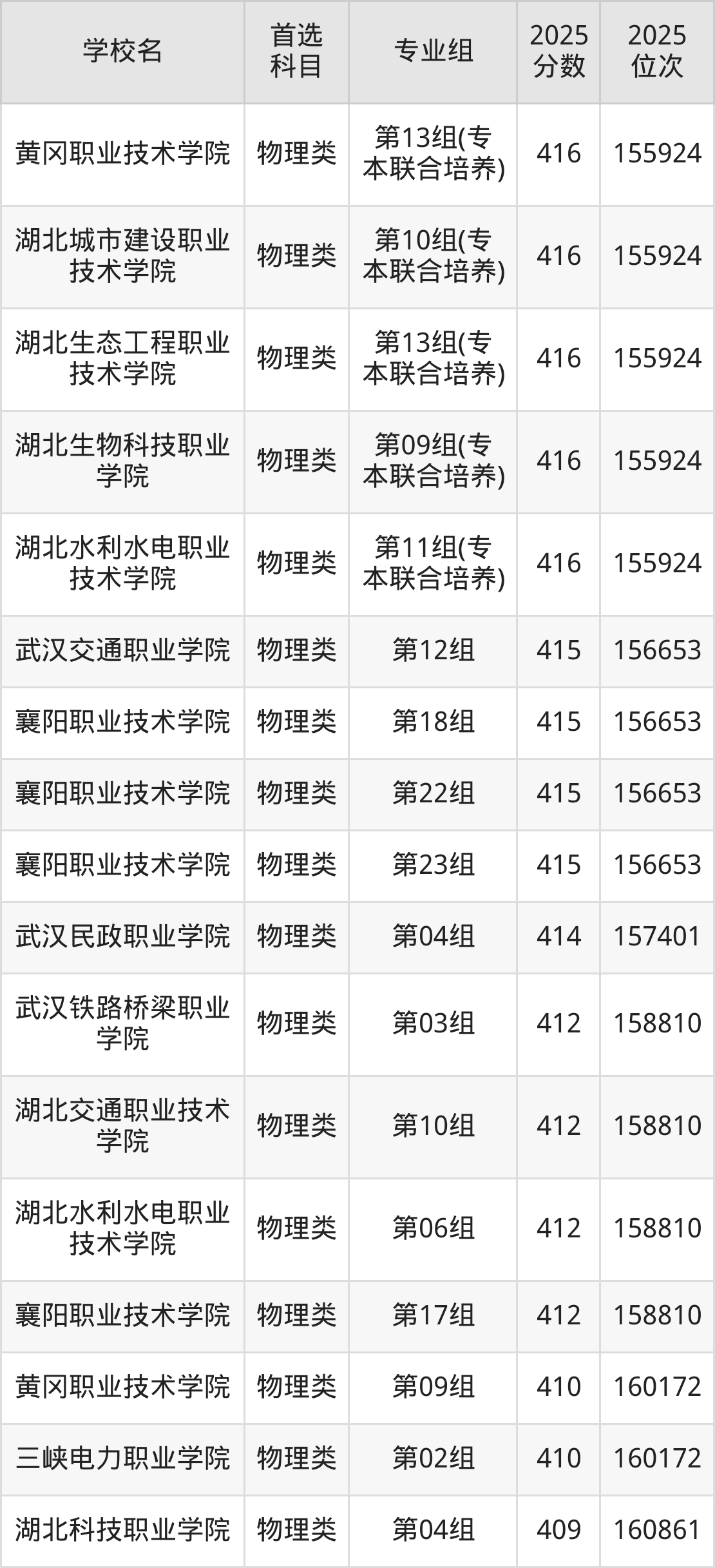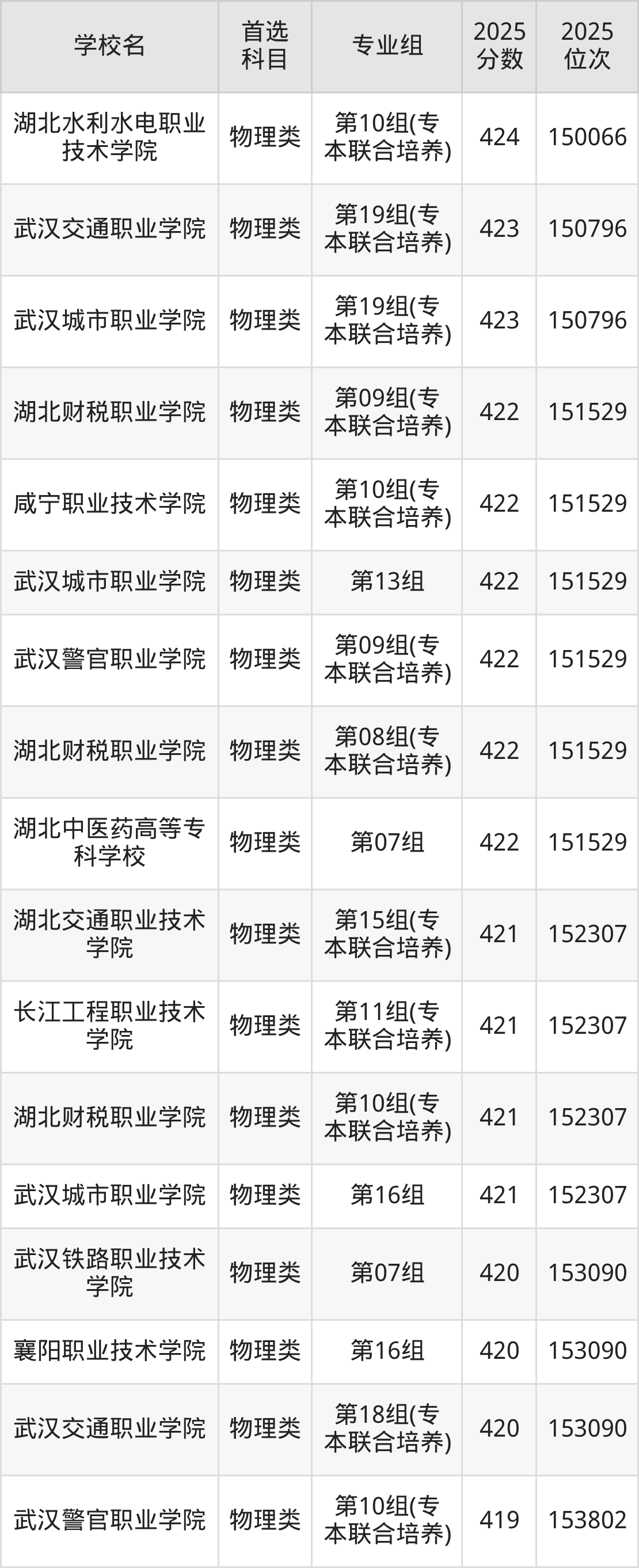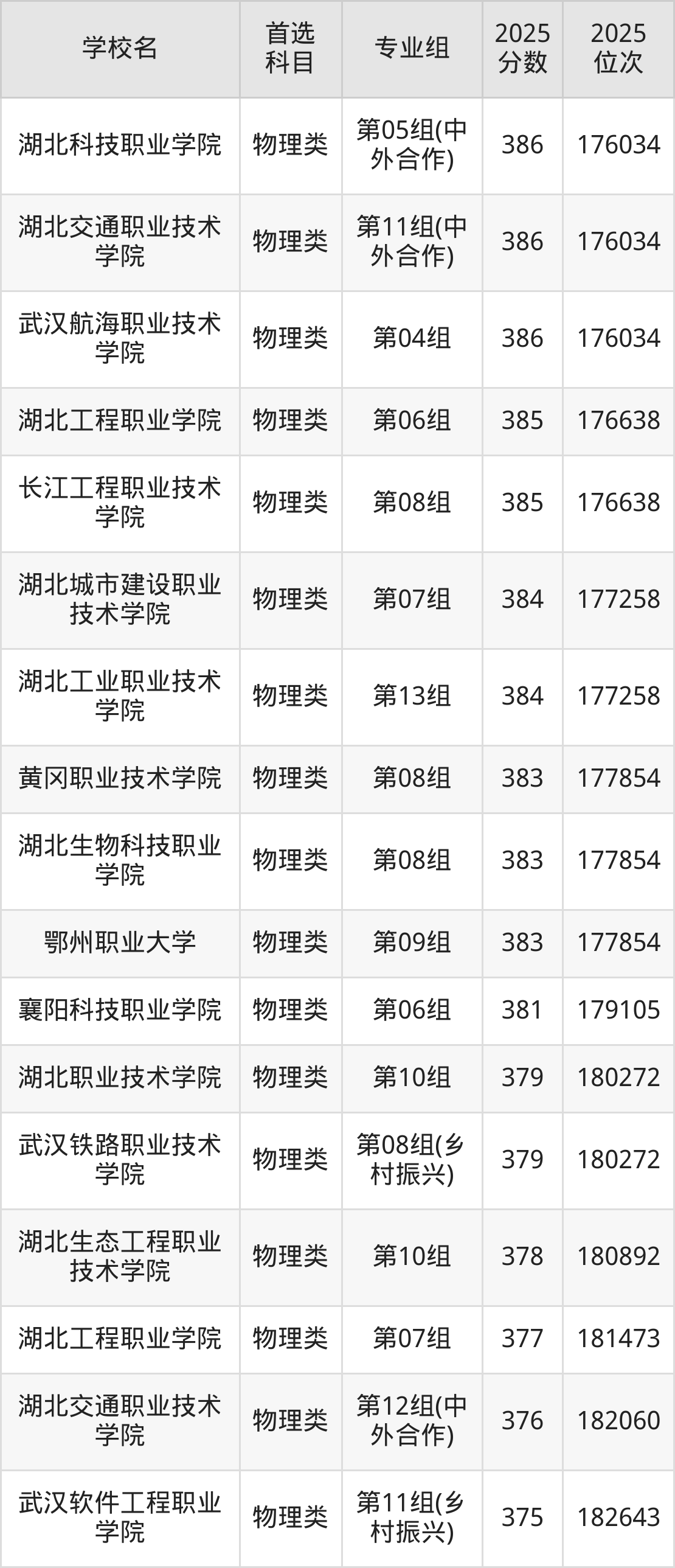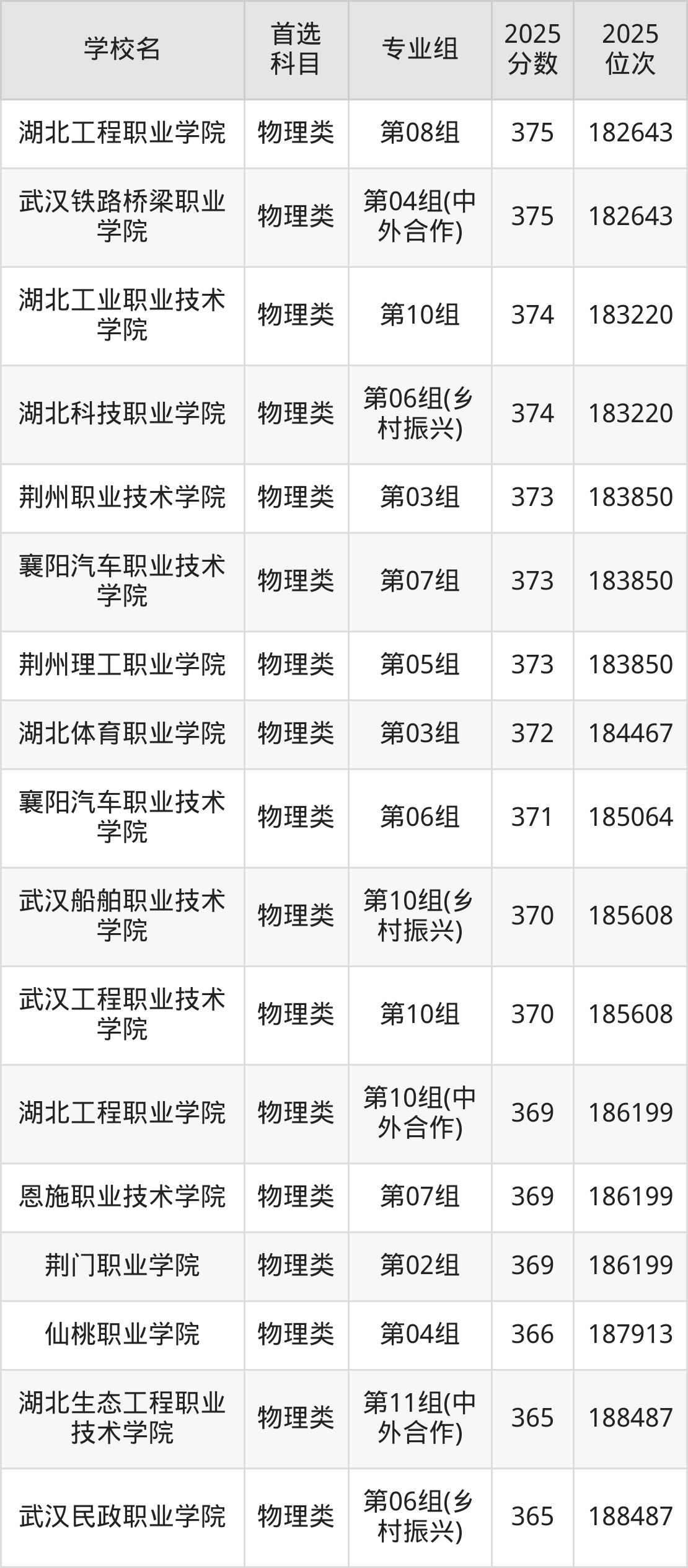 (1)湖北职业技术学院第07组(专本联合培养):476分、37435名;