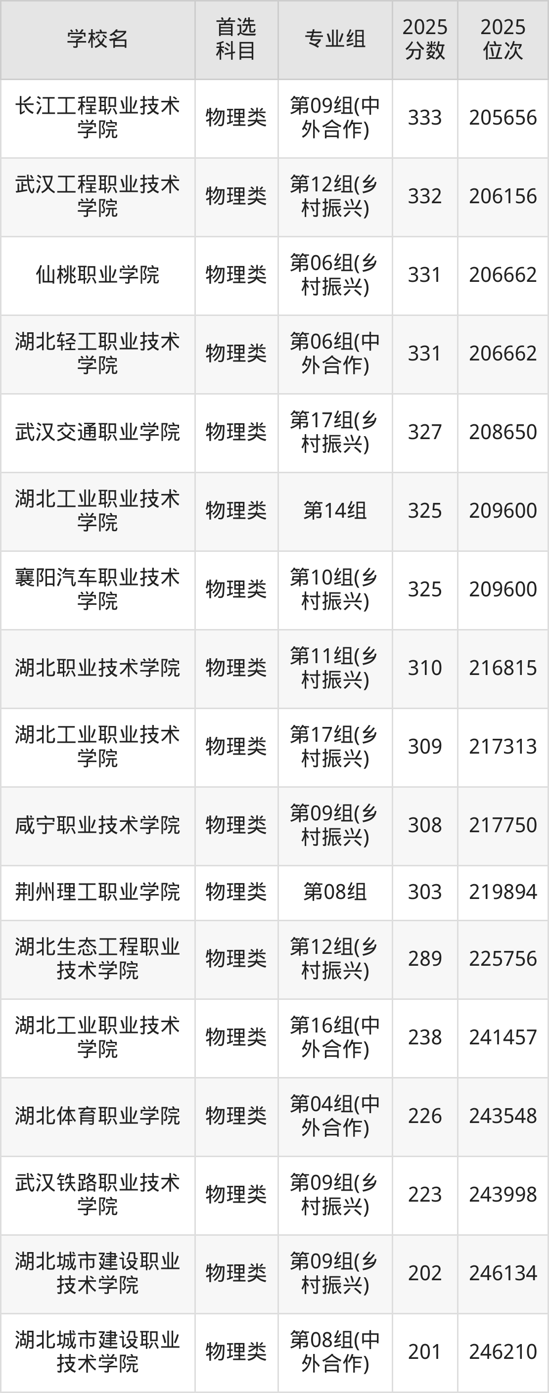 (4)湖北城市建设职业技术学院第08组(中外合作):201分、246210名;