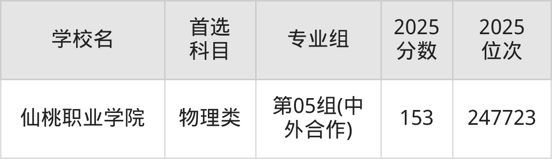 (5)仙桃职业学院第05组(中外合作):153分、247723名;