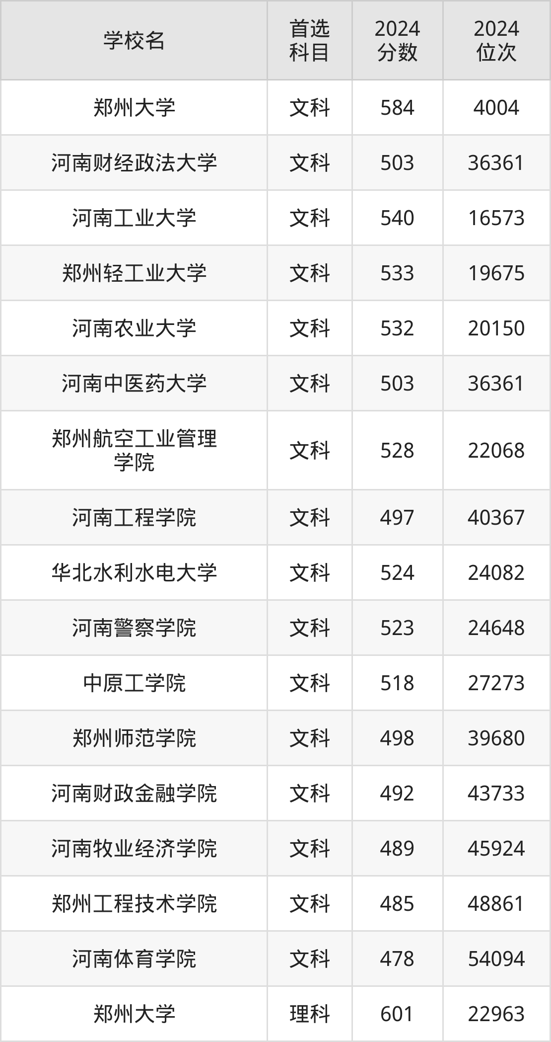 (1)郑州大学:601分、22963名;
