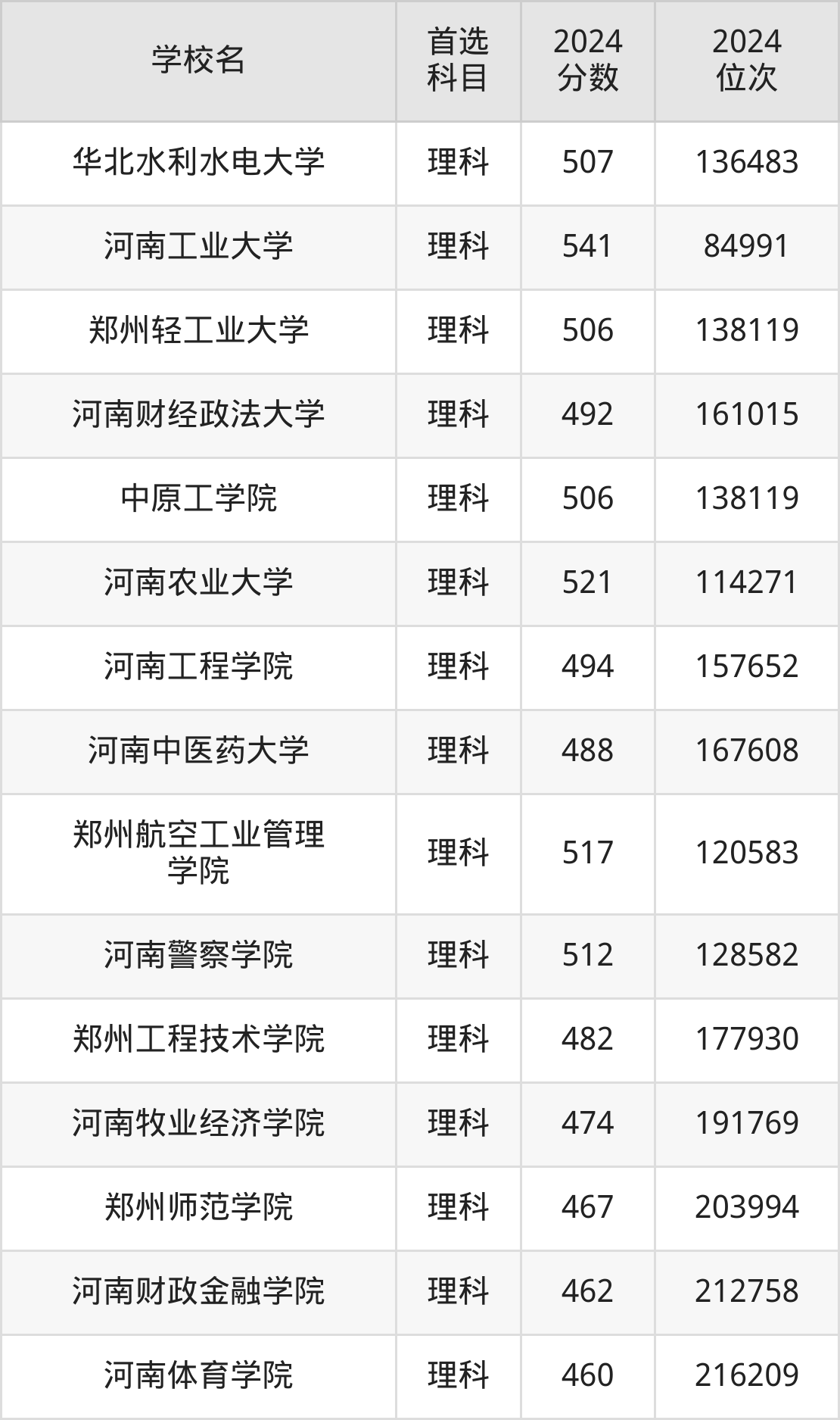 (4)郑州轻工业大学:506分、138119名;