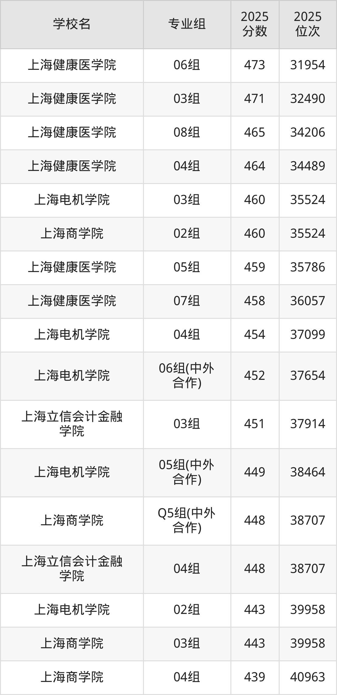 (1)上海商学院(Q5)(中外合作办学):448分、38707名;
