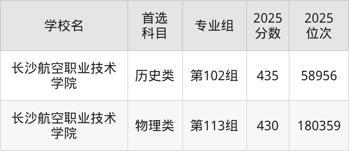 长沙航空职业技术学院第113组:430分、180359名;