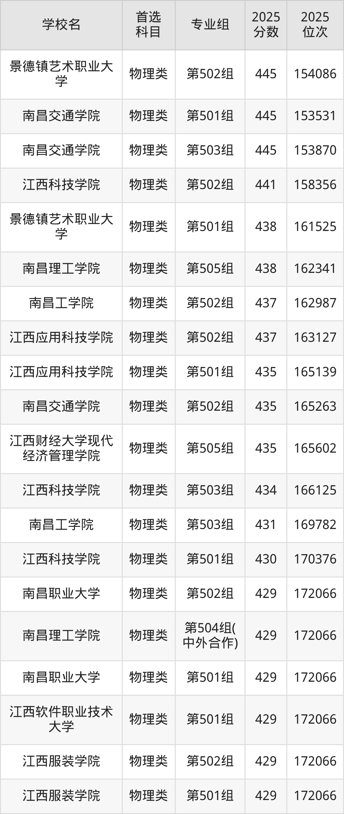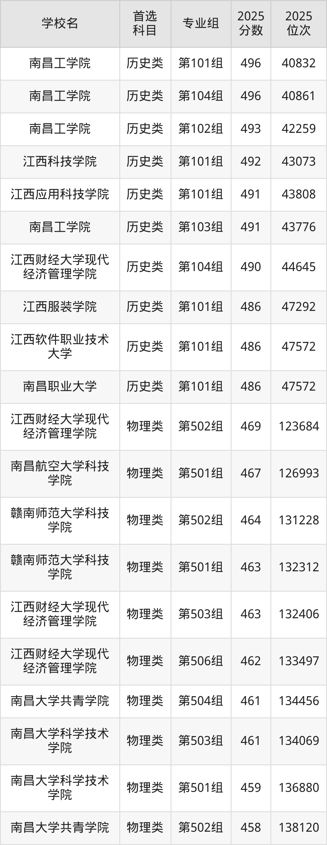 2025年江西民办本科最低录取分数线是429分,收分最低的学校为南昌职业大学第502组。