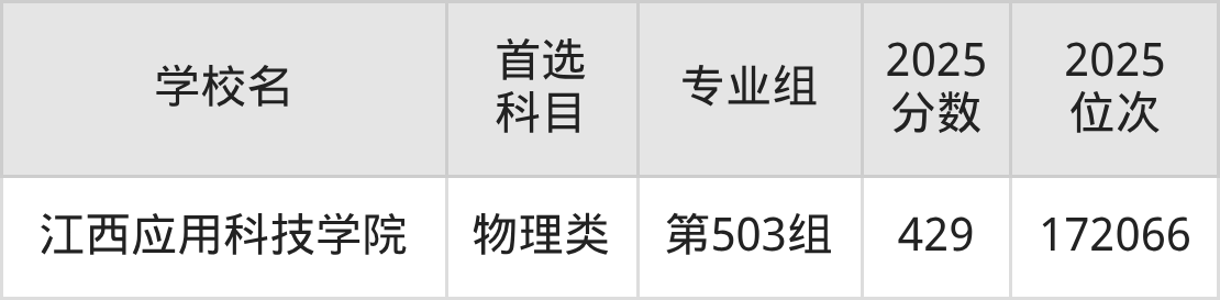 (2)江西软件职业技术大学第501组:429分、172066名;