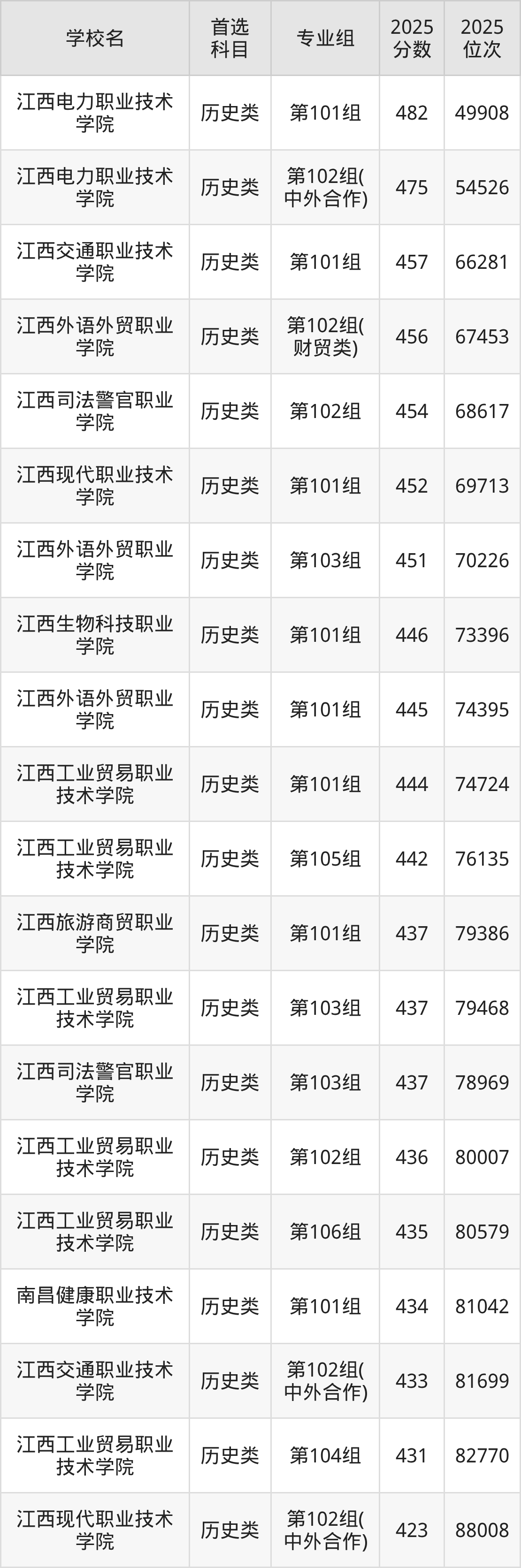 (1)江西电力职业技术学院第101组:482分、49908名;