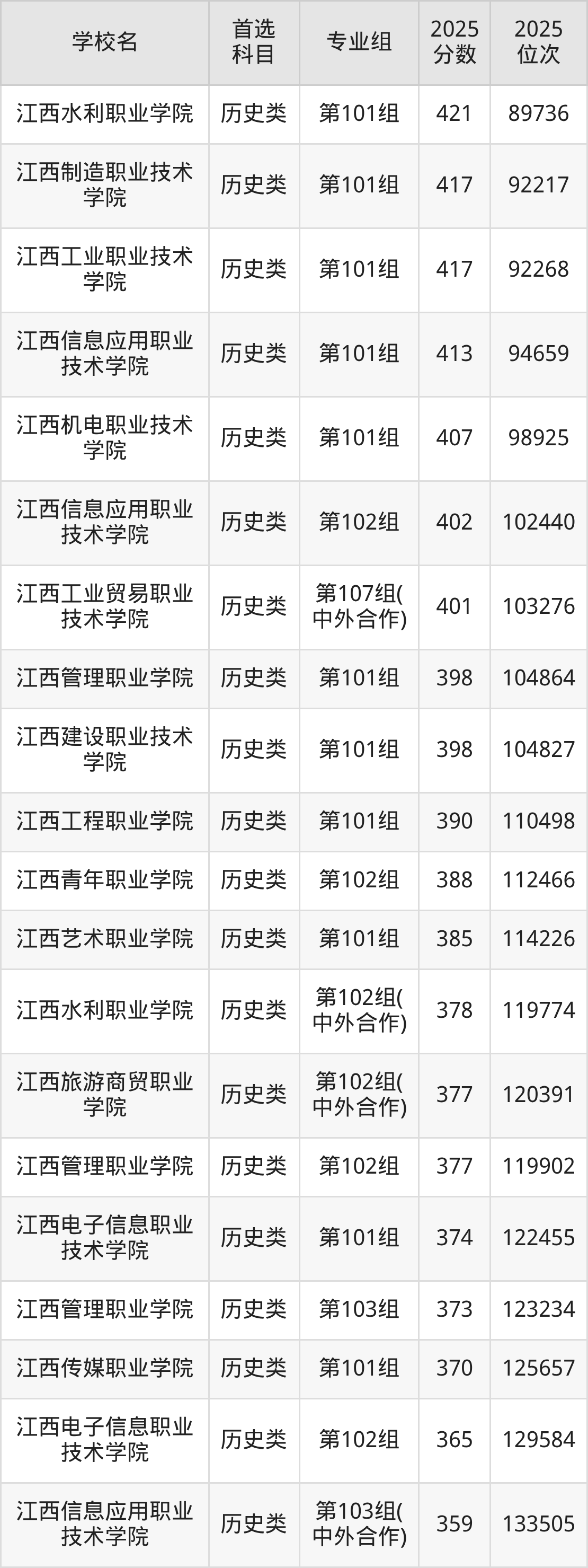 (4)江西信息应用职业技术学院第103组(中外合作):359分、133505名;