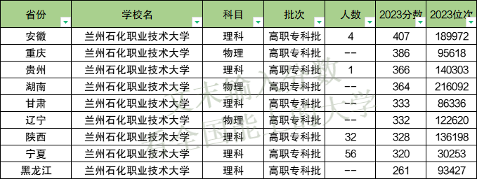 兰州石化职业技术大学专科在黑龙江理科最低261分、安徽理科最低407分。本期将为大家整理2023年兰州石化职业技术大学各省专科分数线,以及2024年在各省的招生计划人数。