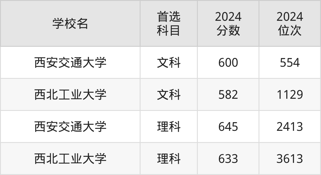 (1)西安交通大学:645分、2413名;