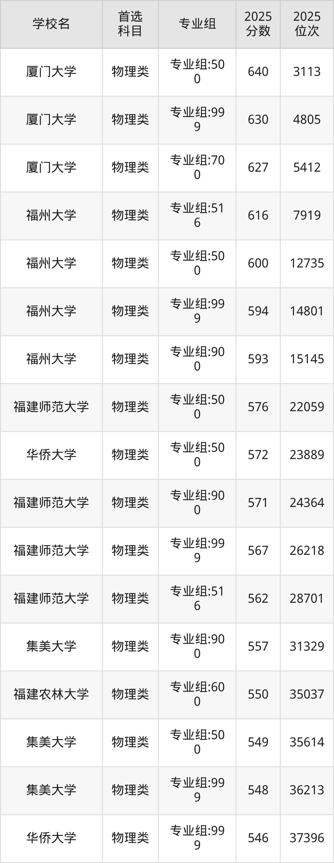 (2)厦门大学700组:615分、935名;
