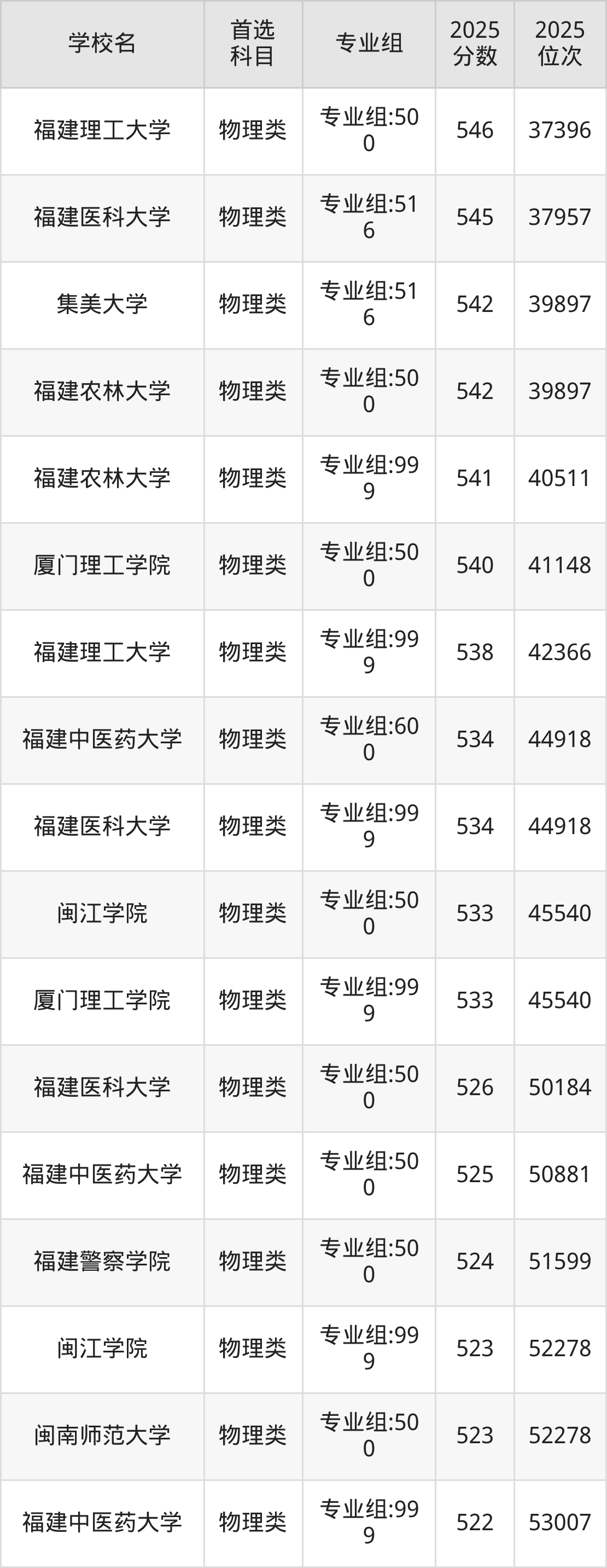 2025年福建省公办本科录取分数线一览表完整版,请查看: