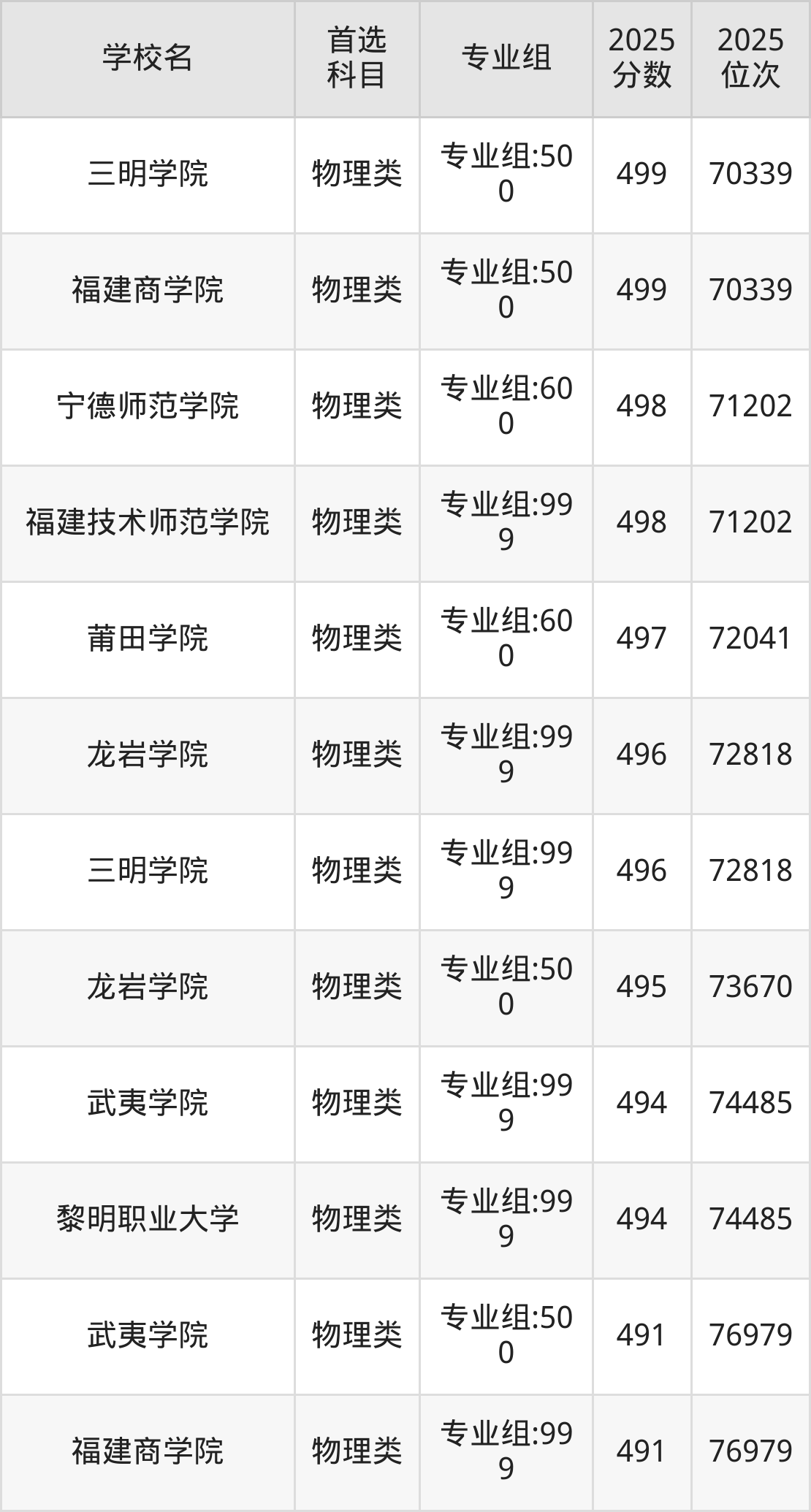 2025年福建公办本科最低录取分数线是491分,收分最低的学校为福建商学院999组。