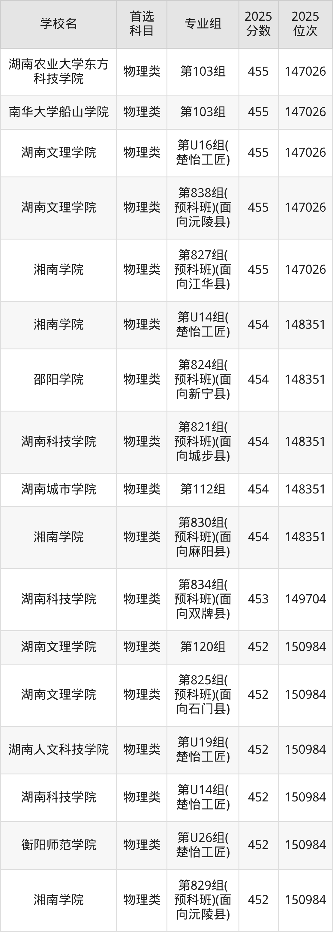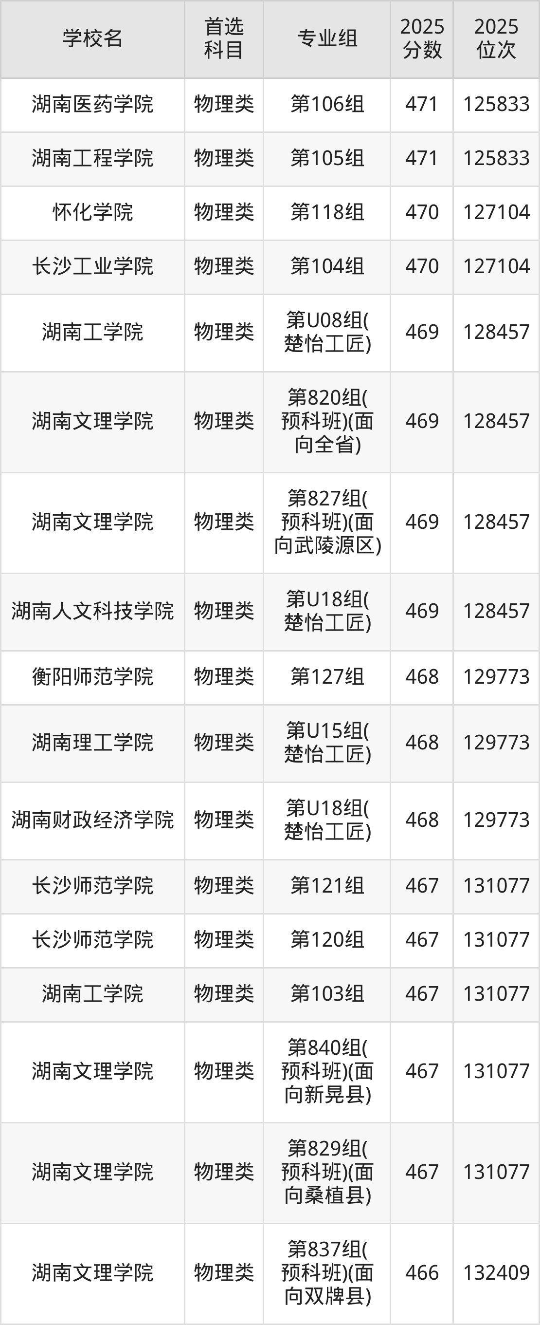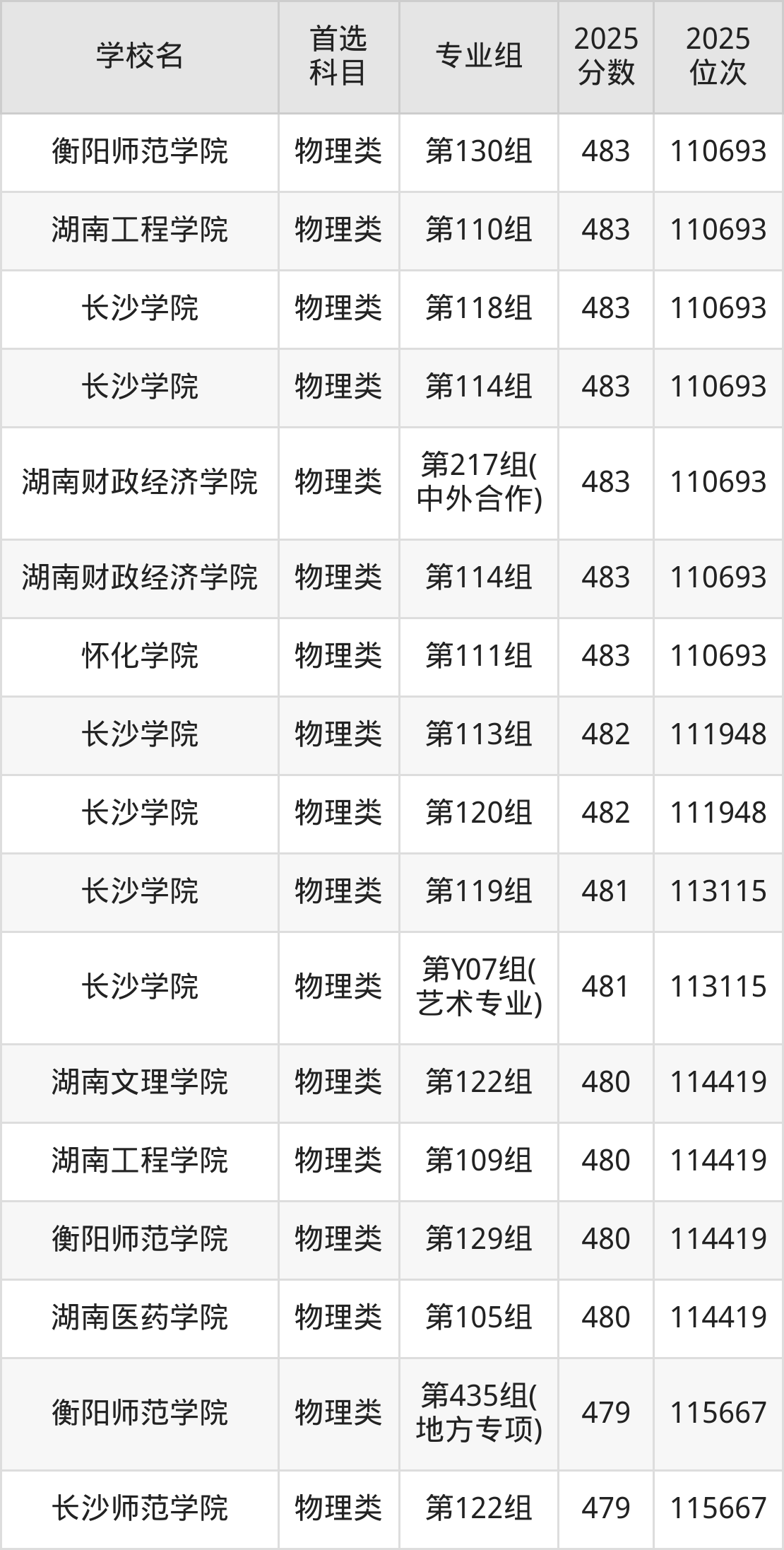 2025年一共有35所二本大学在湖南物理类招生,包含了311个专业组,录取分数线从390分到529分不等,对应最低位次从227983名到61880名。下面分别展示湖南省分数线最高、最低的五个院校专业组。