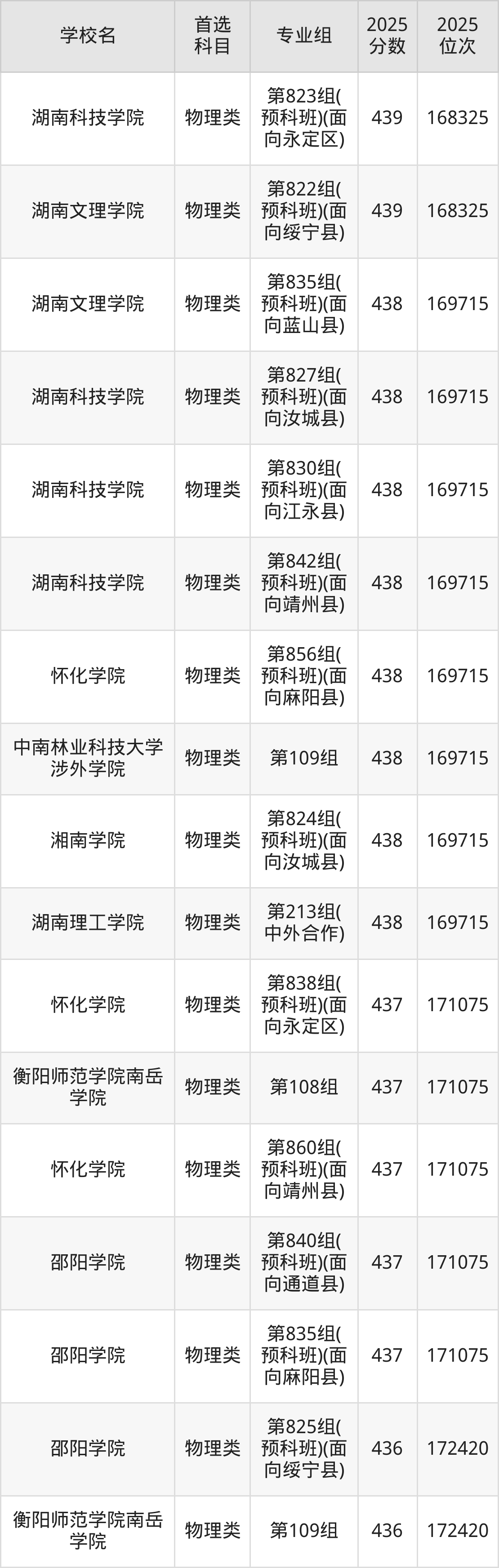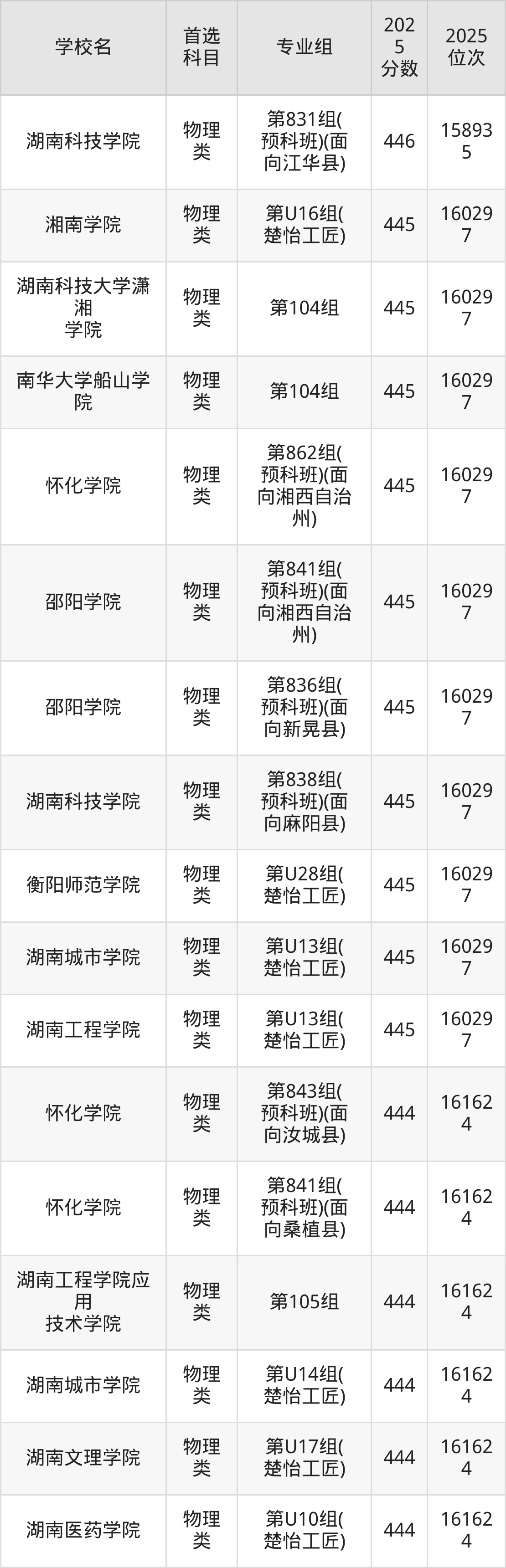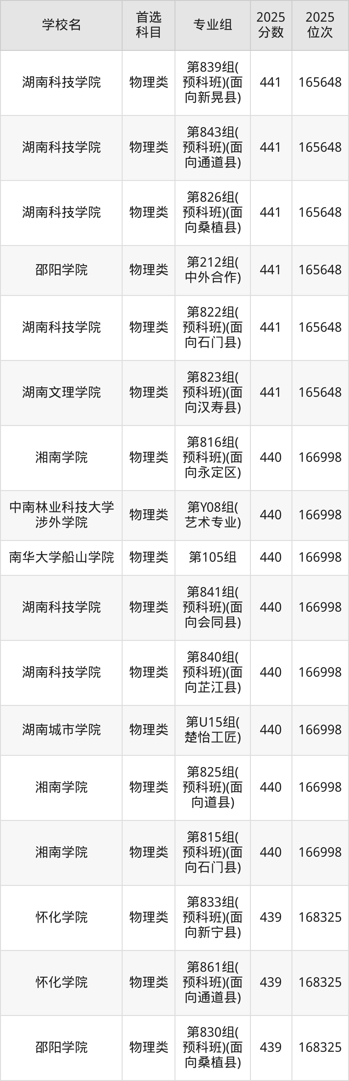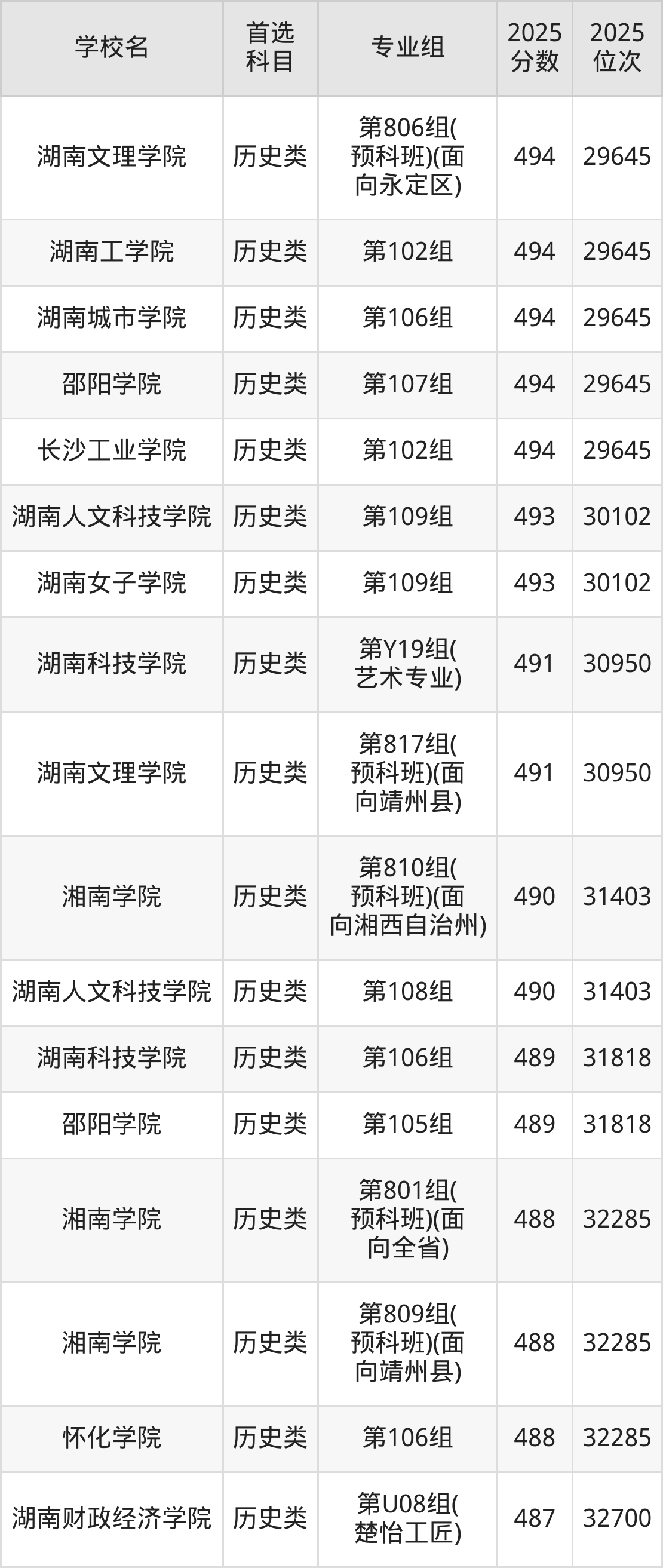 2025年湖南省二本大学录取分数线一览表完整版,请查看: