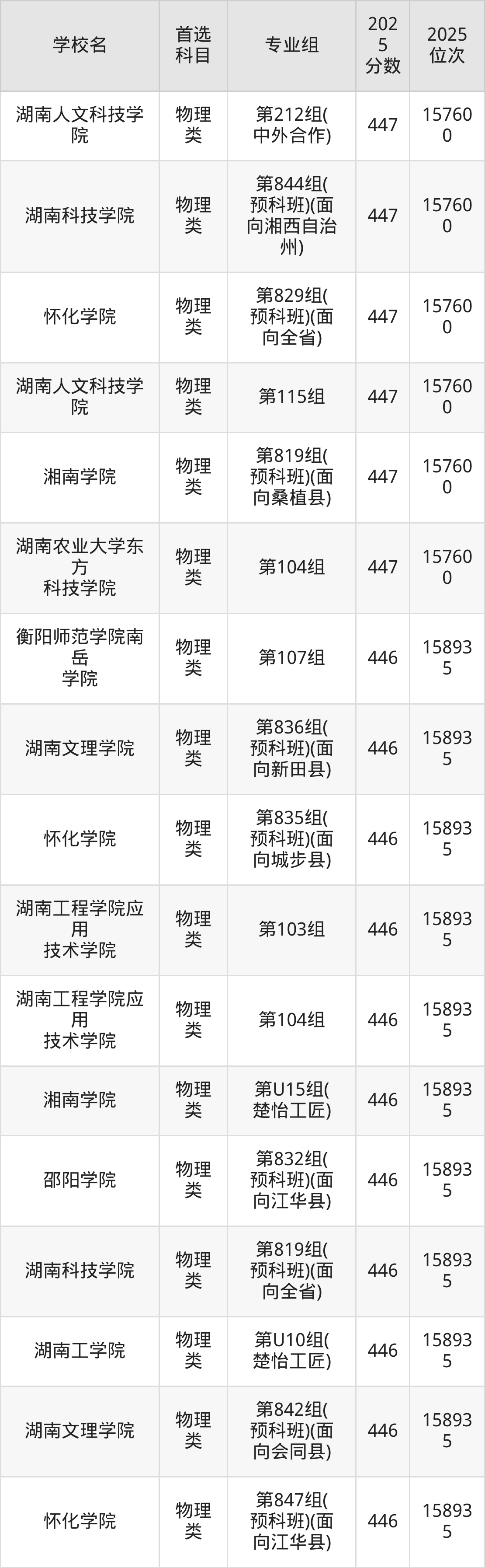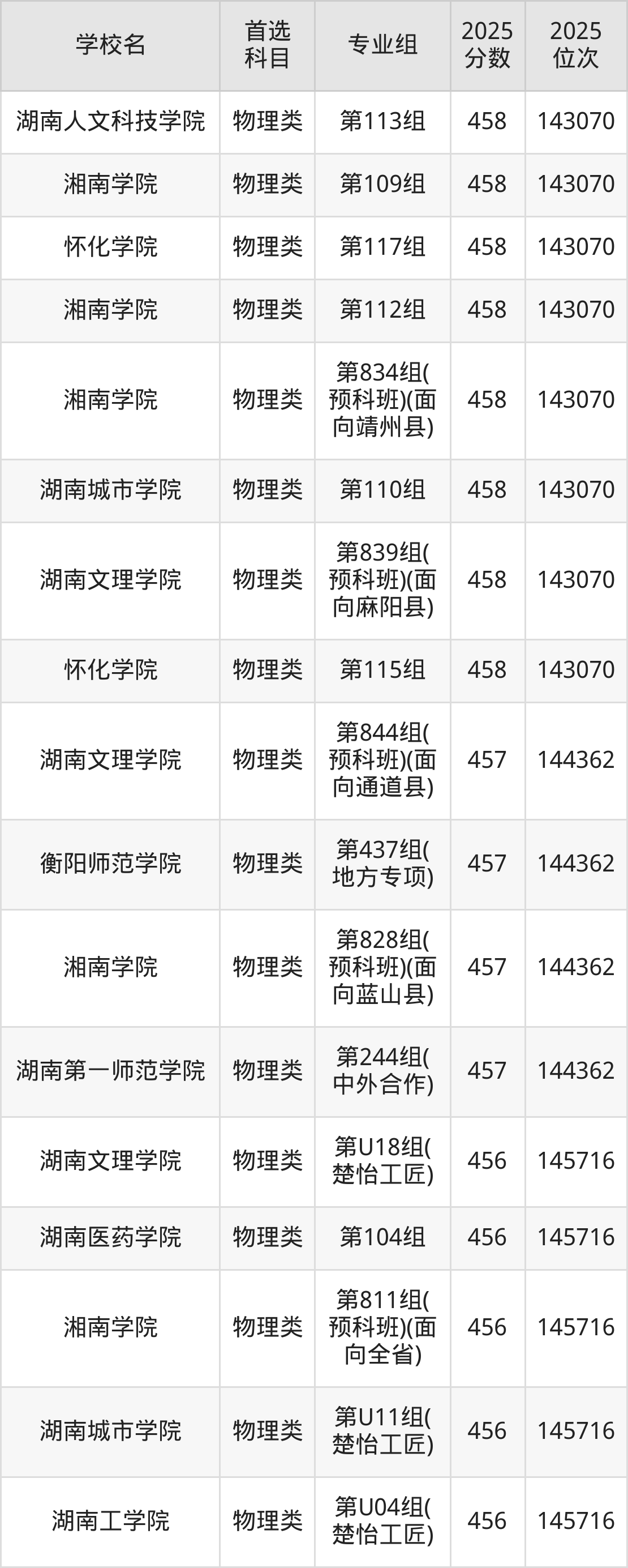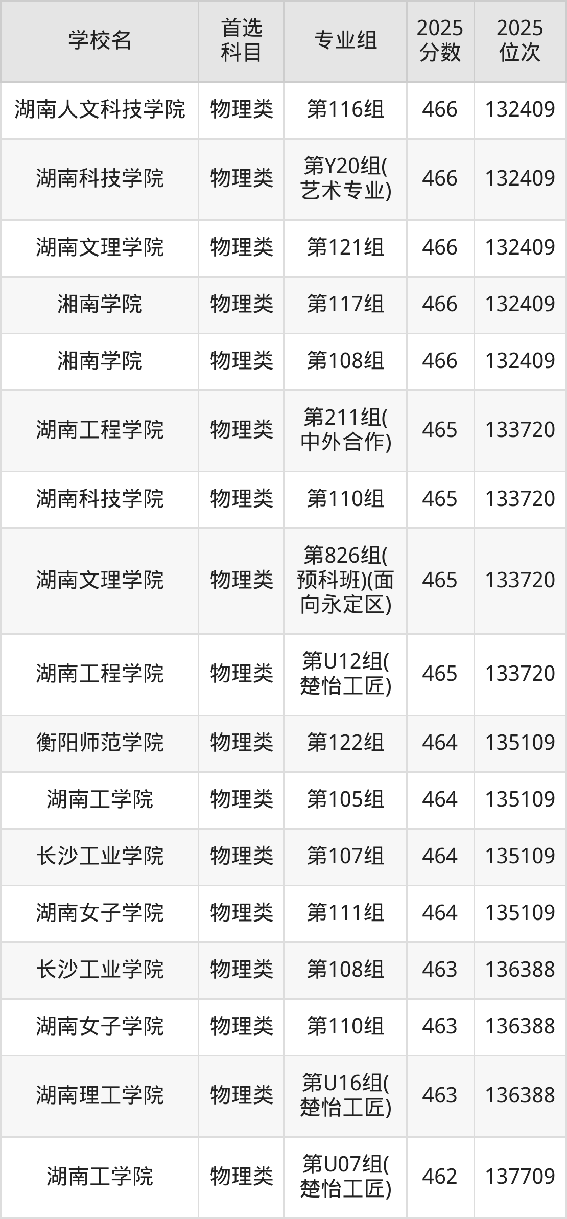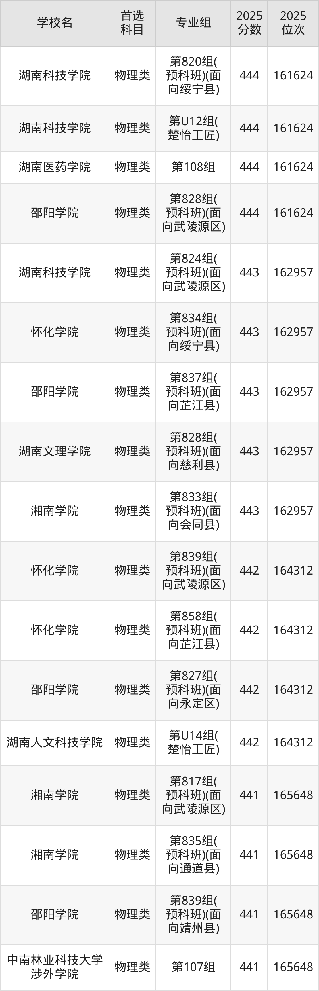2025年湖南省二本大学录取分数线一览表完整版,请查看: