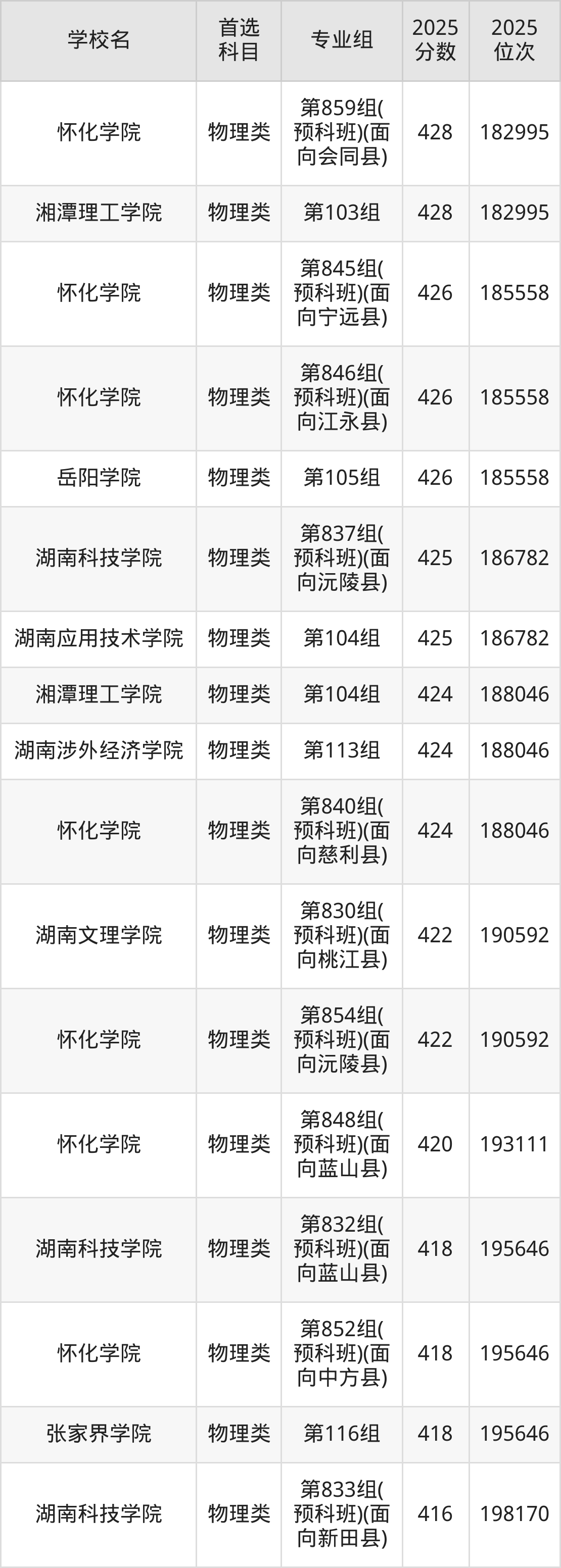 2025年湖南二本大学最低录取分数线是415分,收分最低的学校为怀化学院第802组(少数民族预科班)(面向炎陵县)。