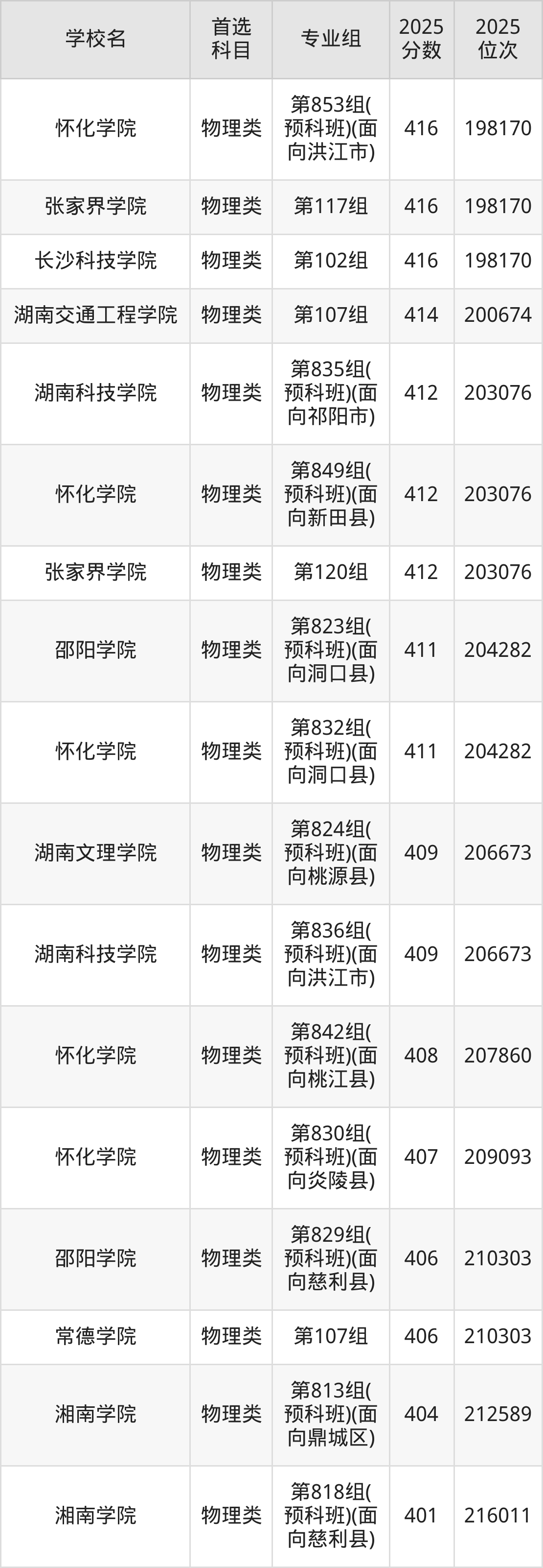 (2)湖南科技学院第828组(少数民族预科班)(面向道县):401分、216011名;