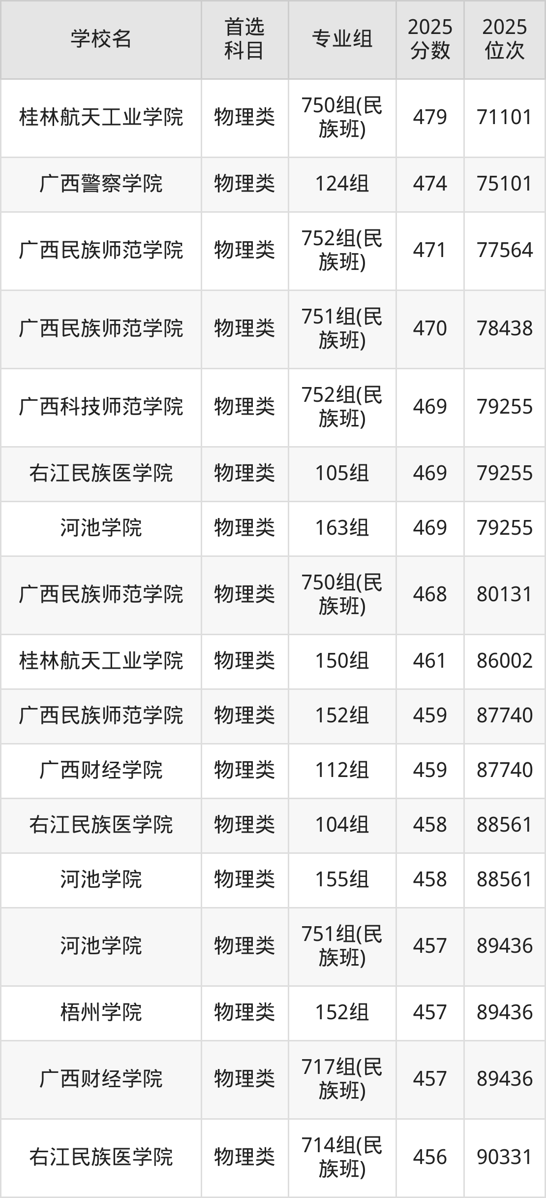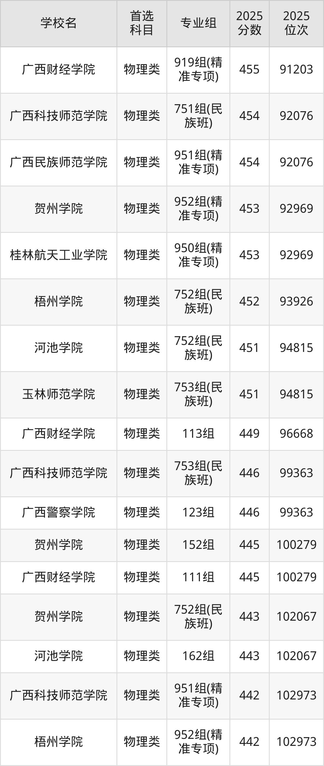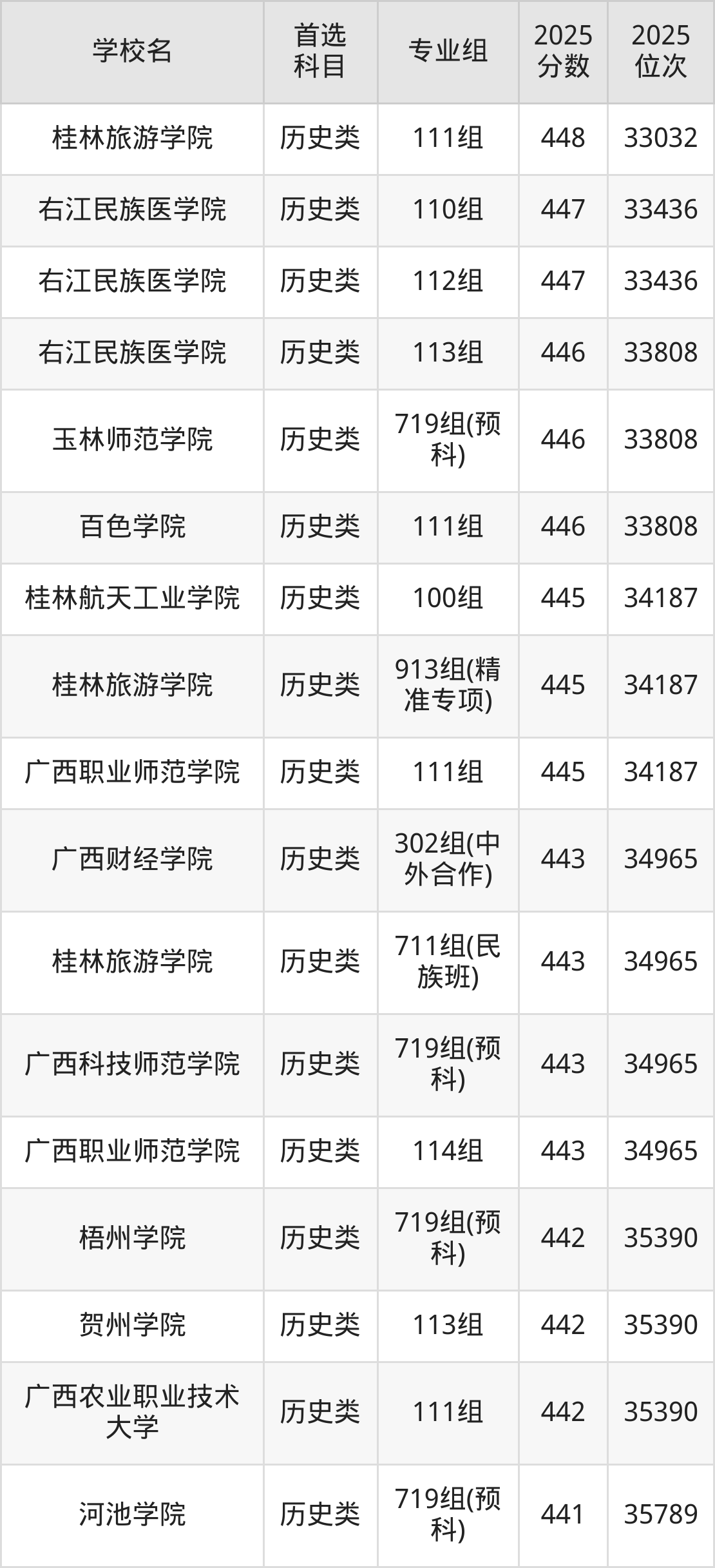 2025年广西二本大学最低录取分数线是402分,收分最低的学校为广西城市职业大学113组。