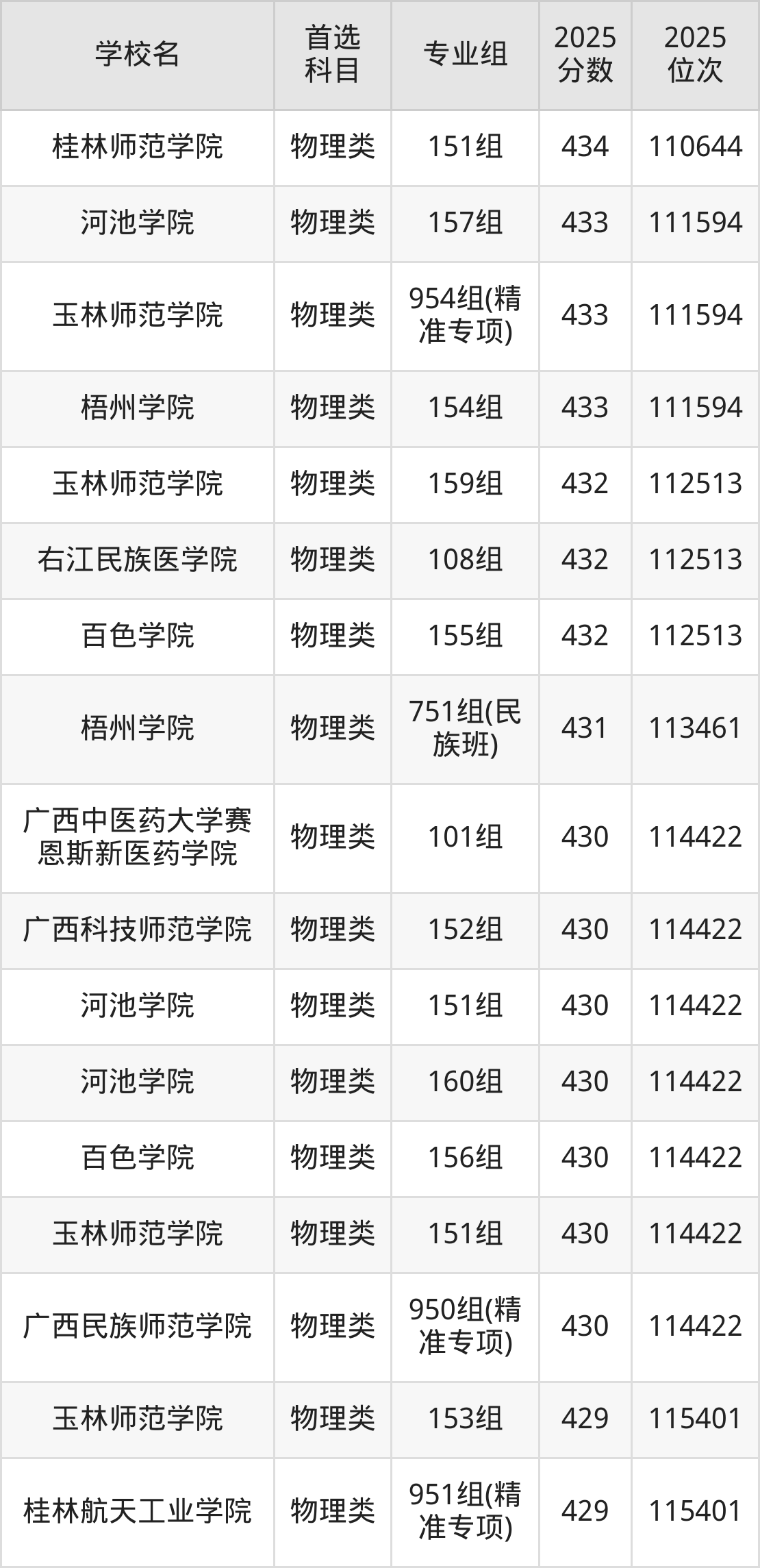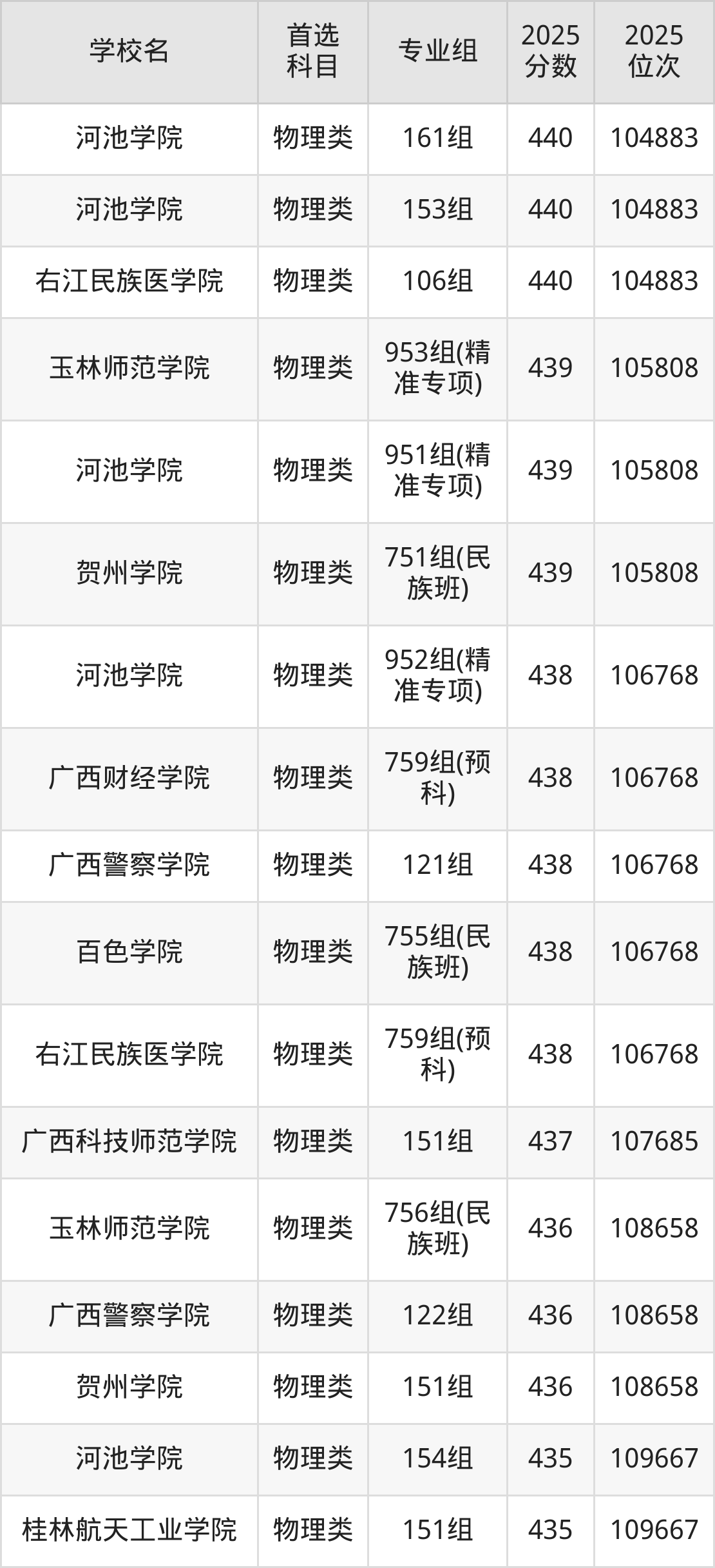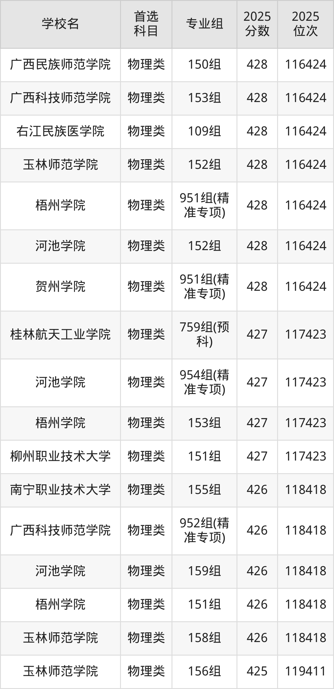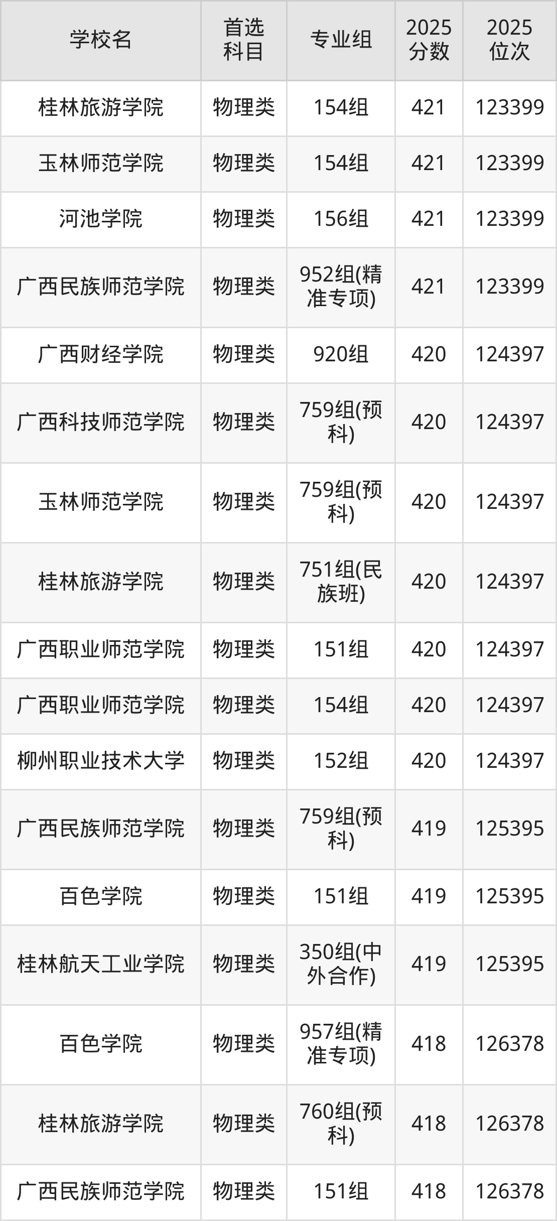 2025年广西二本大学最低录取分数线是402分,收分最低的学校为广西城市职业大学113组。