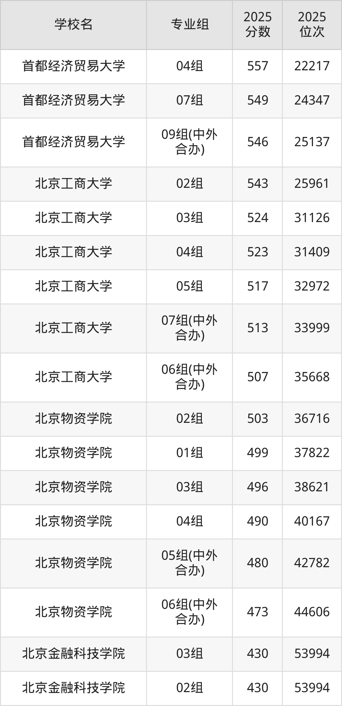 2025年北京市财经类大学录取分数线一览表完整版,请查看: