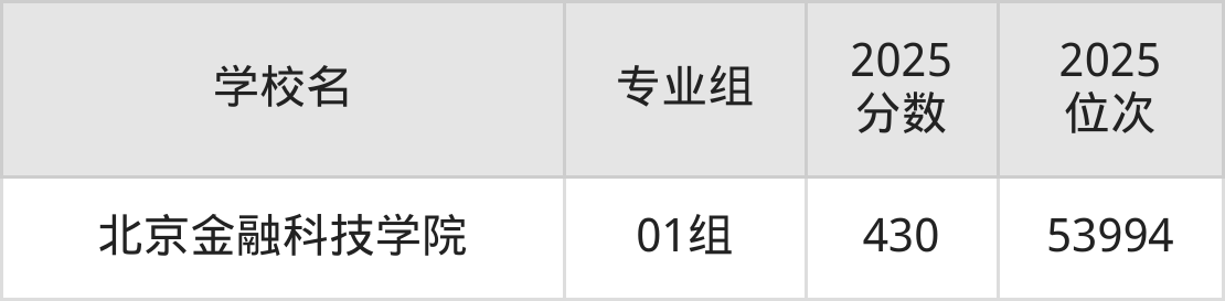 (5)北京金融科技学院(01):430分、53994名;