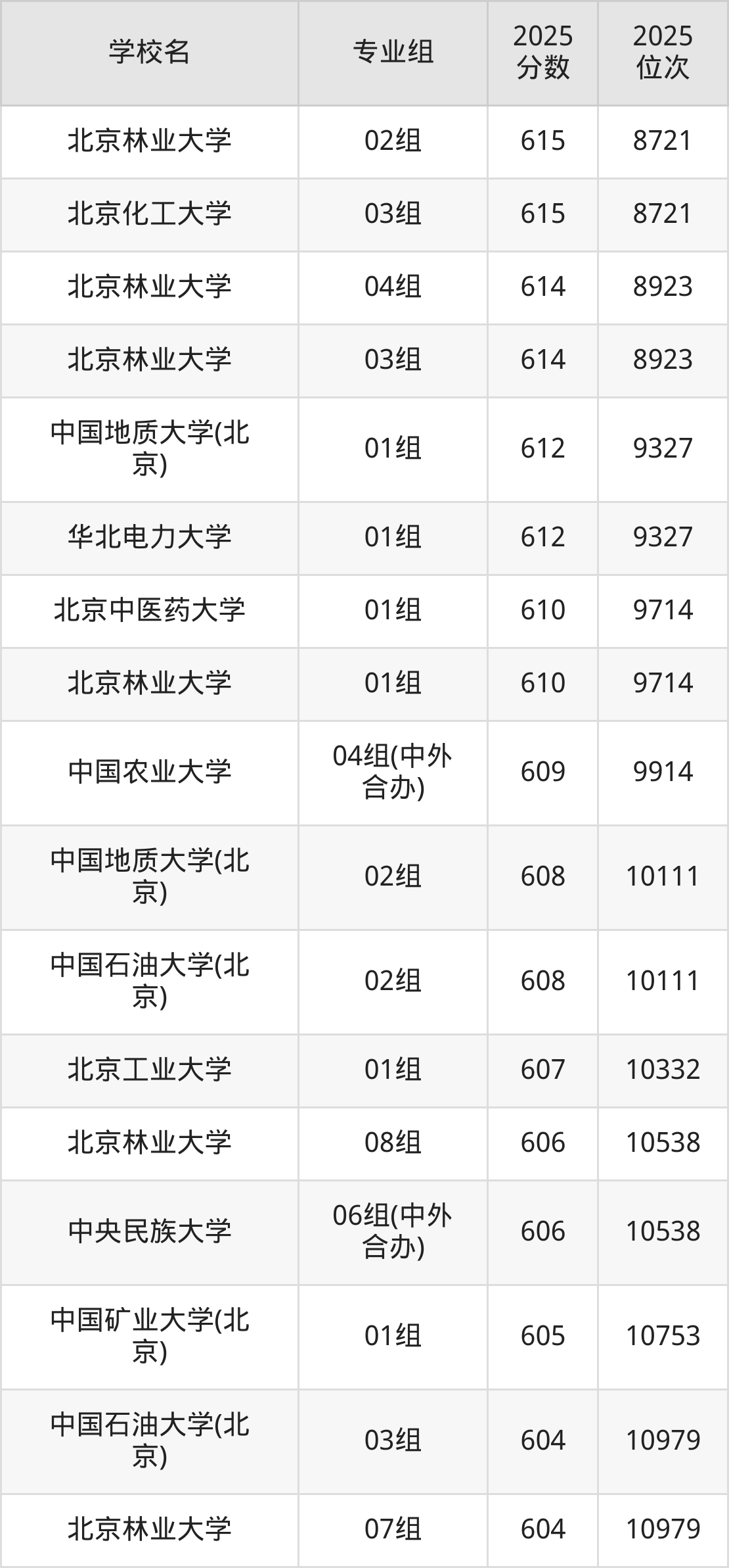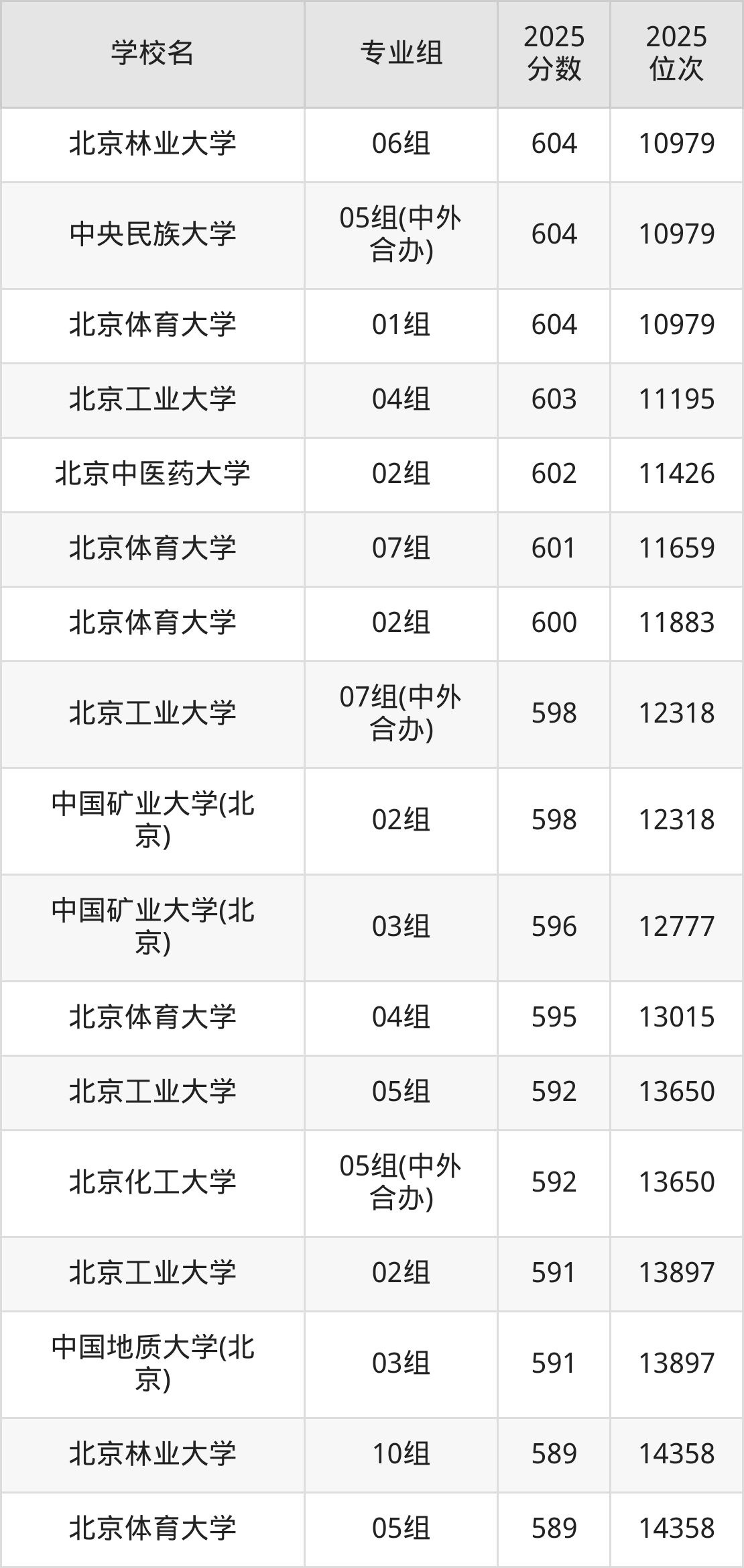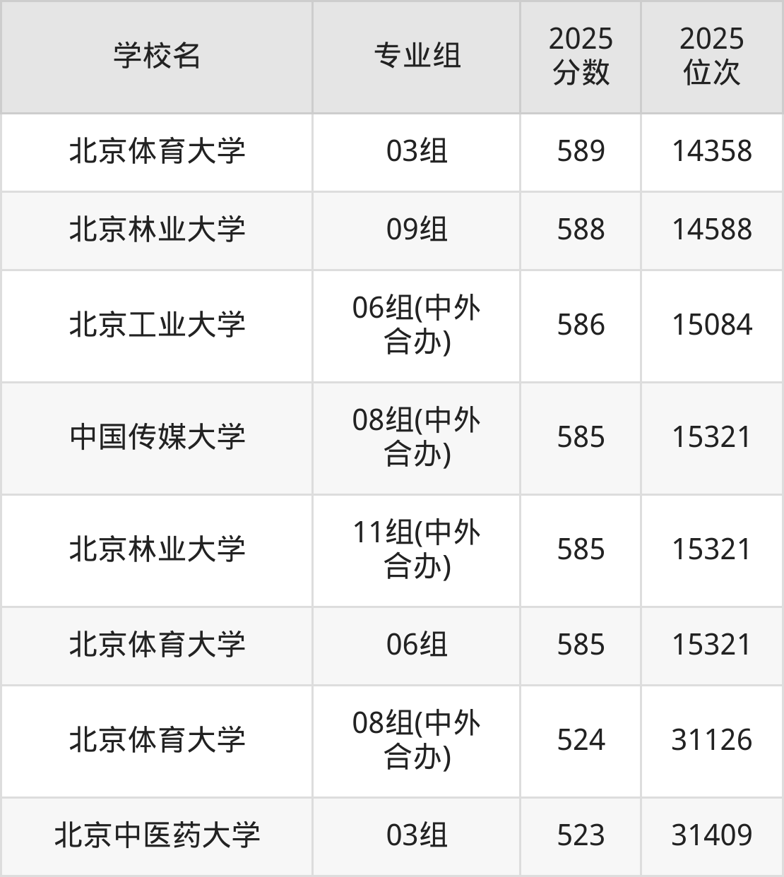 (2)北京林业大学(11)(中外合办):585分、15321名;