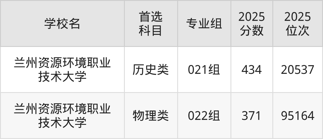 兰州资源环境职业技术大学022组:371分、95164名;