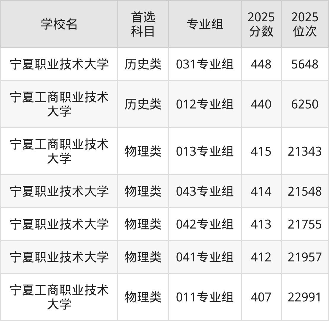 (1)宁夏职业技术大学031专业组:448分、5648名;