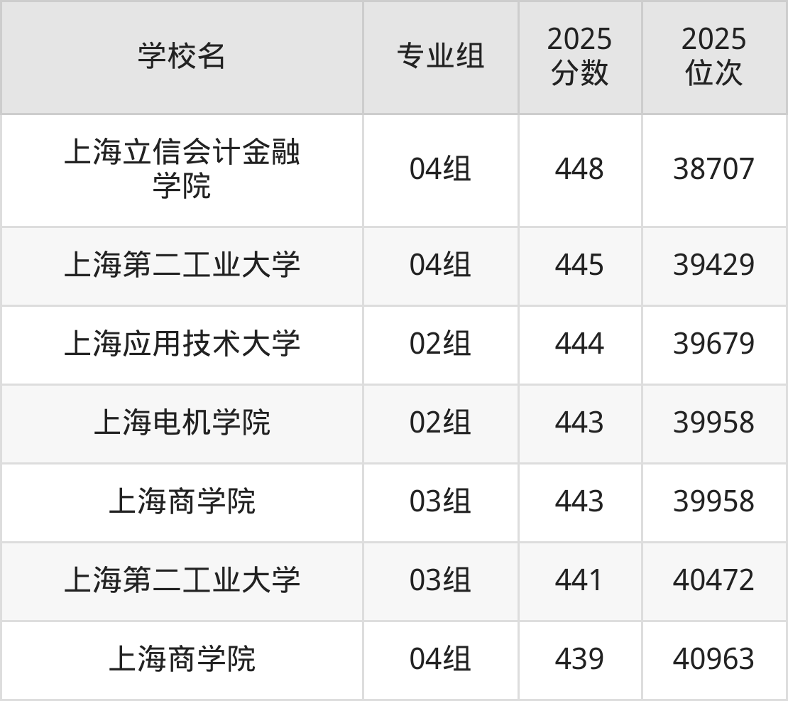 2025年上海公办本科最低录取分数线是439分,收分最低的学校为上海商学院(04)。