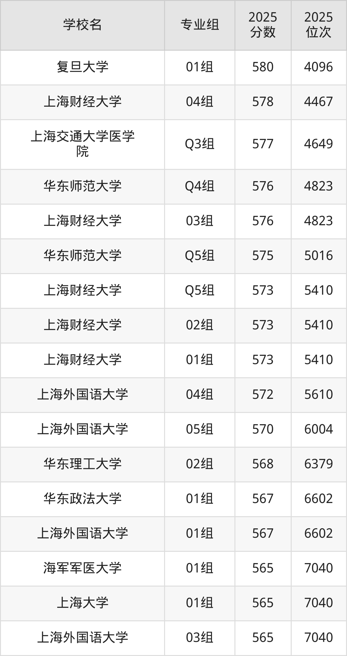 (2)上海交通大学医学院(Q2):580分、4096名;